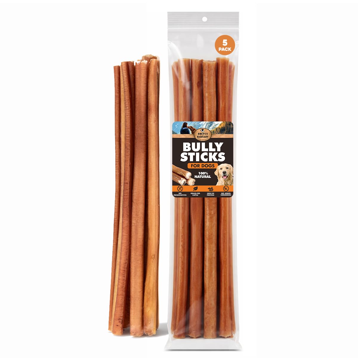 BRUTUS & BARNABY 12 Inch Bully Sticks for Dogs (5 Count) - Long Lasting Natural Beef Chew, Odor Free, Grass Fed, Single Ingredient, Rawhide Free for|Pet Supplies