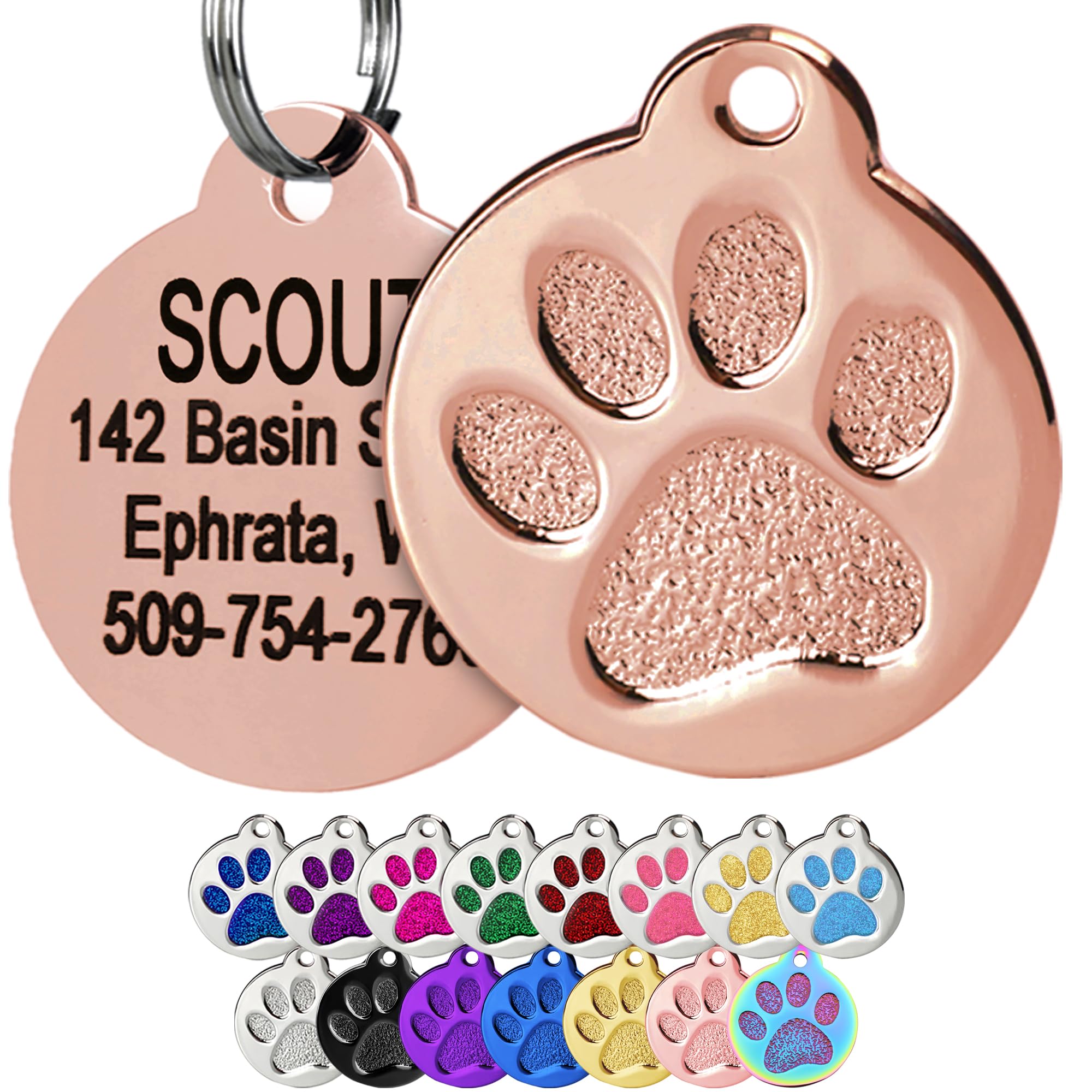 GoTags Paw Print Round Stainless Steel Pet Tag for Dogs and Cats, Personalized with 4 Lines of Custom Engraved ID Name and Number, in Stainless Steel|Pet Supplies
