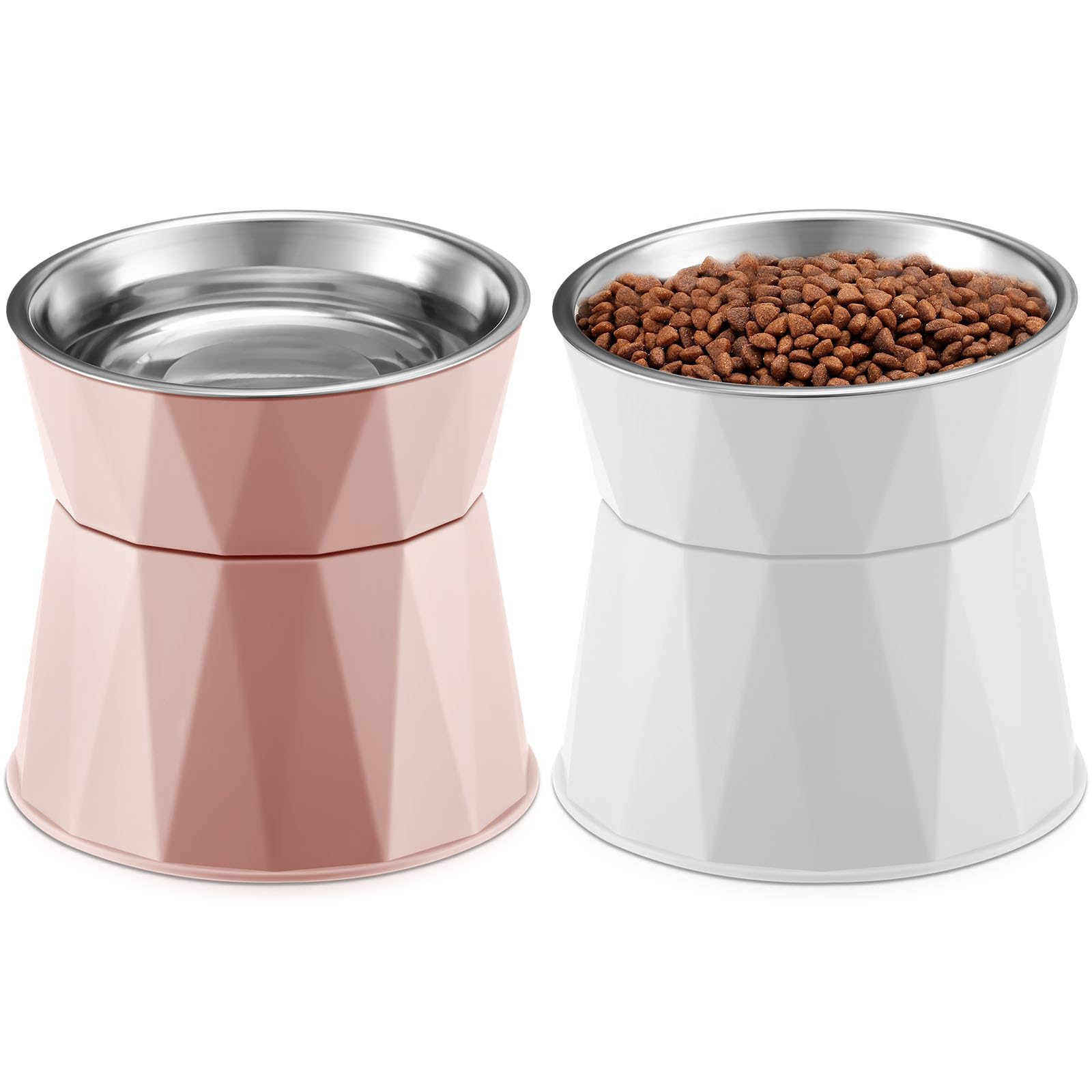 Lallisa 2 Pcs Elevated Cat Bowls Adjustable Raised Cat Feeder Non Slip Food Water with Stand Safe Stainless Steel Bowls with Pet Food Stand for Pets|Pet Supplies