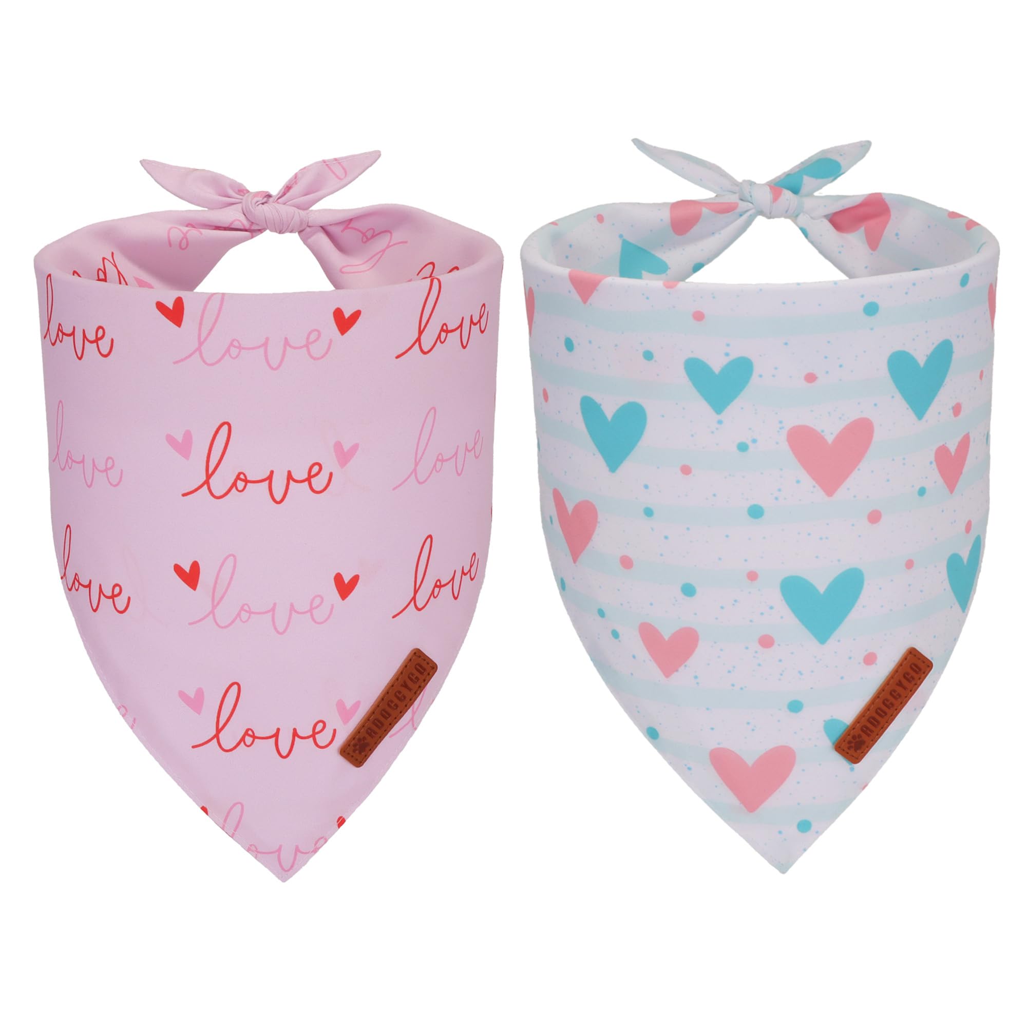 ADOGGYGO Valentine Dog Bandanas 2 Pack, Triangle Reversible Pink White Heart Dog Scarf, Premium Durable Fabric, Pet Valentine Bandana for Medium Large|Pet Supplies
