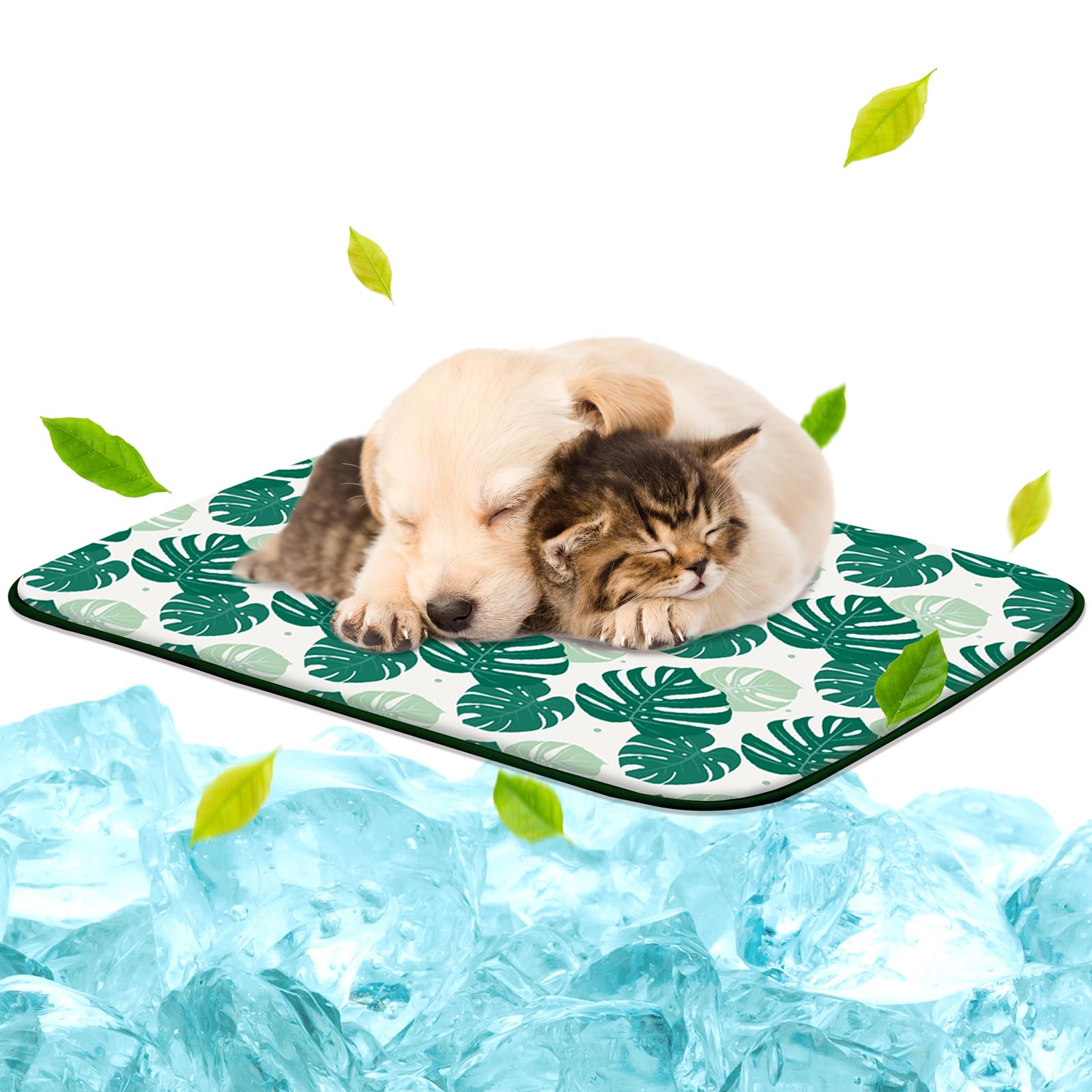 NWK Pet Cooling Mat - Ice Silk Cooling Mat for Dogs & Cats Portable & Washable Pet Cooling Blanket, Car Seats, Beds for Summer (1, Green Leaf, 20'' X|Pet Supplies