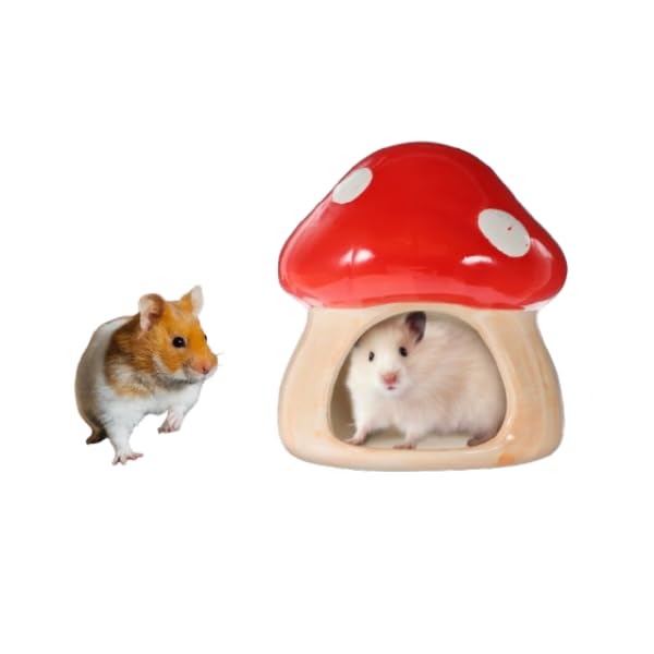 POPETPOP Ceramic Hamster Habitat Hideout - Red Mushroom Hamster House, Small Animals Cool Habitats Bed for Dwarf Hamster Mice Gerbils Lemmings|Pet Supplies