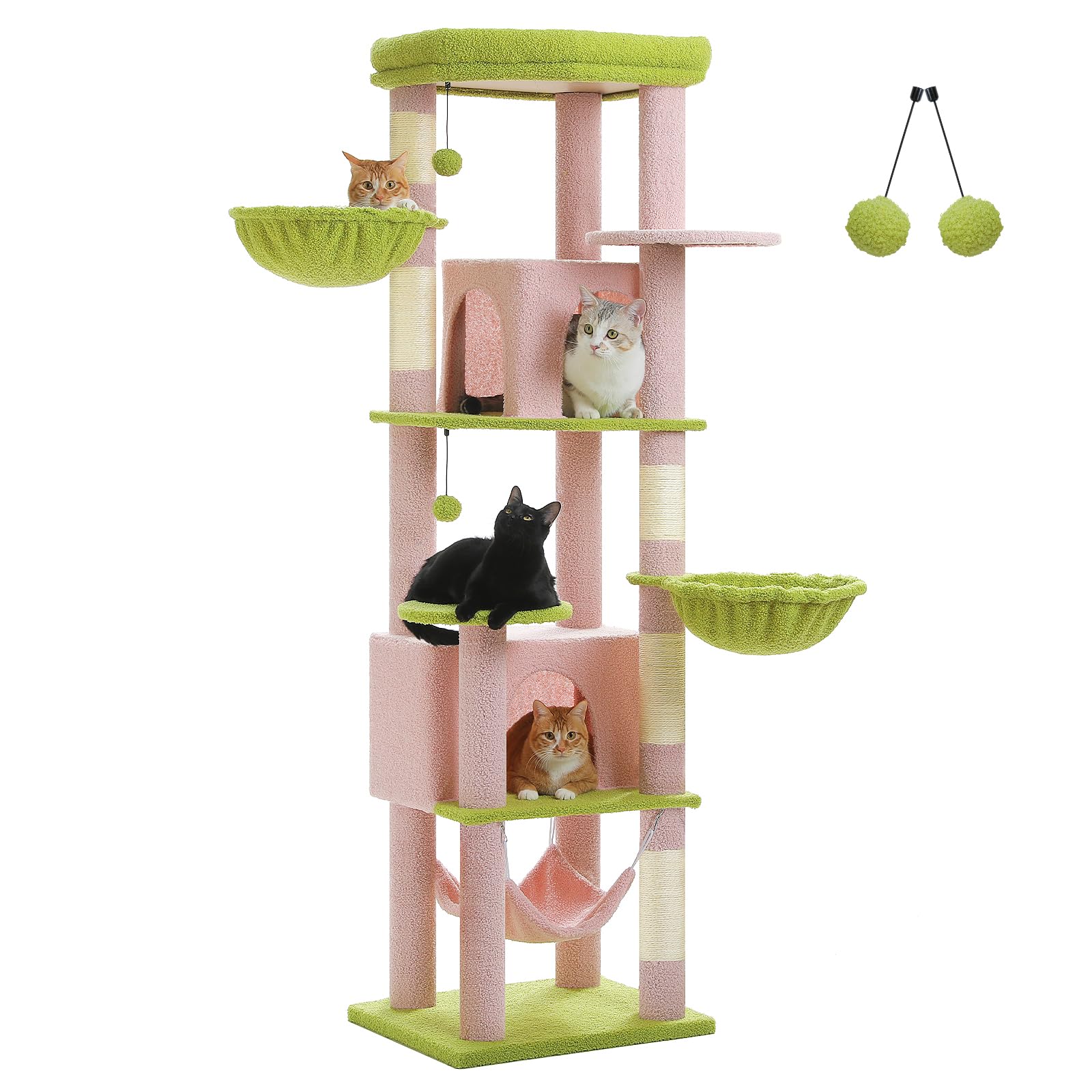 UYMI 71.2 Inches Flower Tall Cat Tree for Large Cats, Multi-Level Cat Tower with 2 Cozy Condos, Super Large Top Perch, 3 Hammocks, Sisal Scratching|Pet Supplies