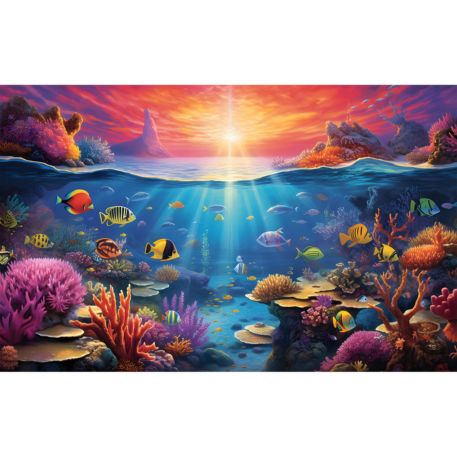 Under The Sea Aquarium Background Underwater Scene with Coral Reef Fish Tank Backdrop Tropical Plants Fishes Natural Ocean Underwater Sunset Seascape|Pet Supplies