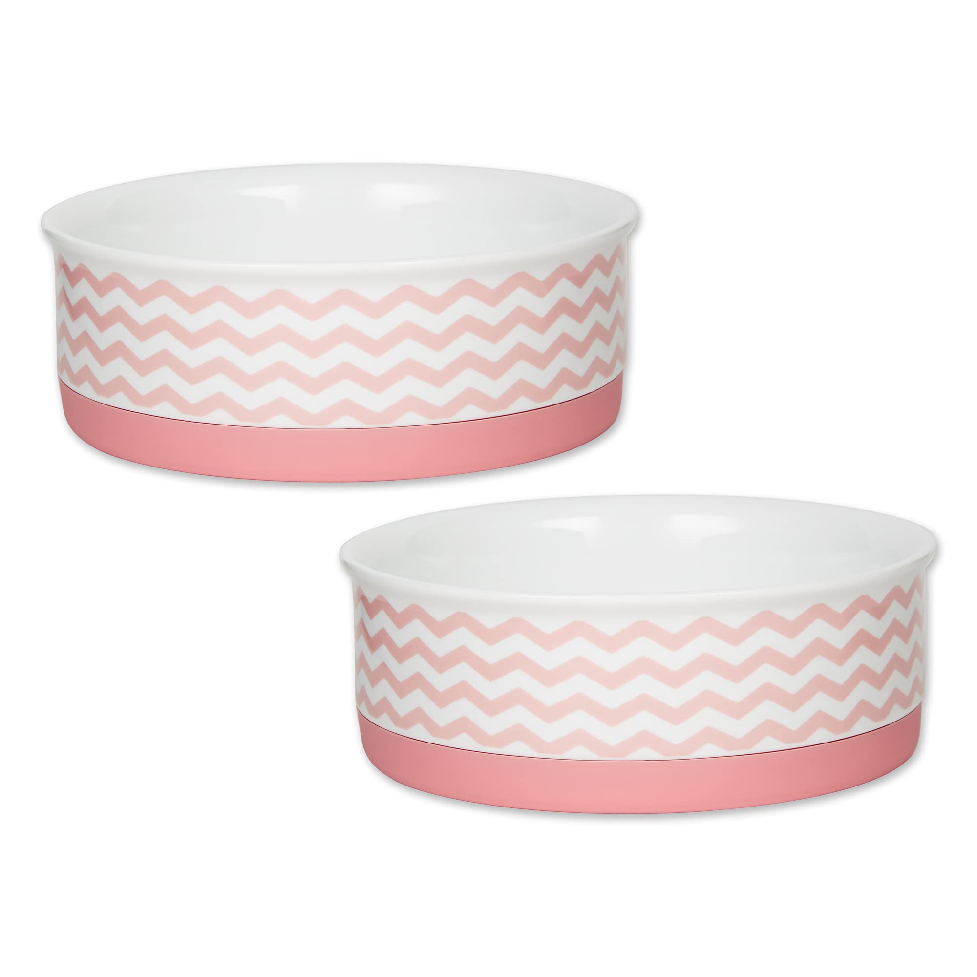 Bone Dry Ceramic Pet Collection Chevron, Medium Set, 6x2, Pink, 2 Piece|Pet Supplies