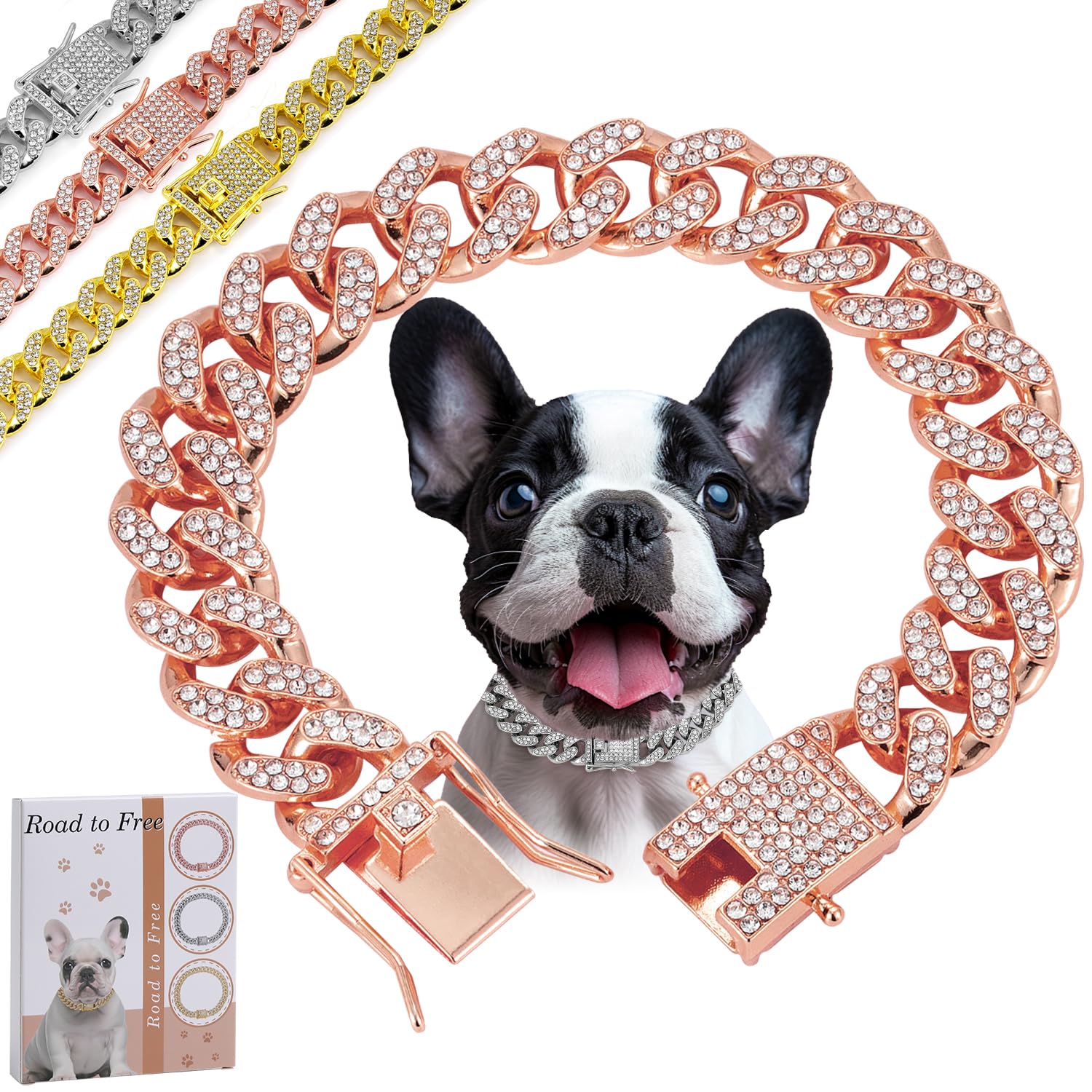 Rosegold Dog Chain Diamond Collar Walking Metal Chain Collar with Secure Buckle, Pet Cuban Style Collar Jewelry Accessories for Small Medium Large|Pet Supplies