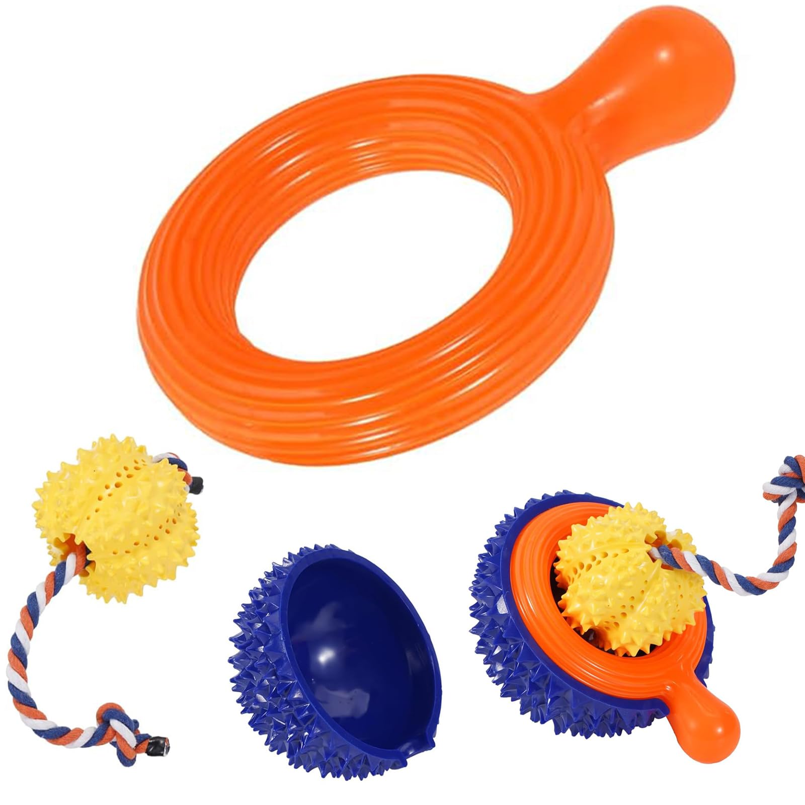 4 Pack Dog Chew Toy, Durable Flying Discs for Throwing Catching, 3-in-1 Dogs Toys, Indestructible Pet Chew Toy for Aggressive Chewer, Reduces Anxiety,|Pet Supplies