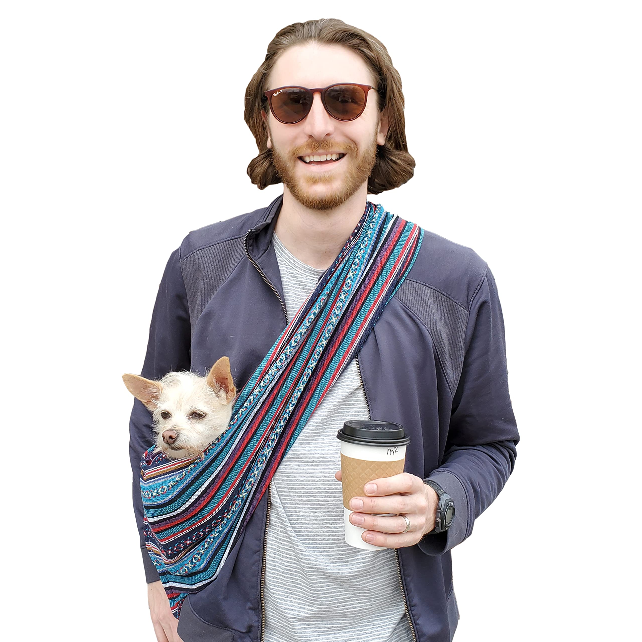 Dog Sling Carrier 100% Organic Cotton for Cats Too (Beach House)|Pet Supplies