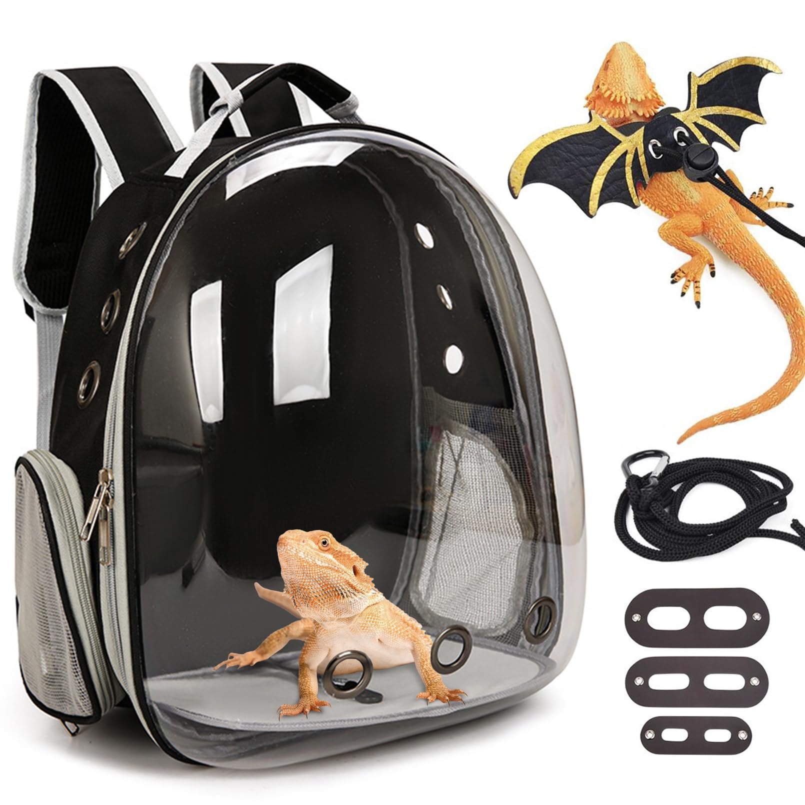 kathson Bearded Dragon Carrier with Harness and Leash Set, Large Reptile Travel Carrier Portable Lizard Backpack Clear Small Animals Carrying Bag for|Pet Supplies