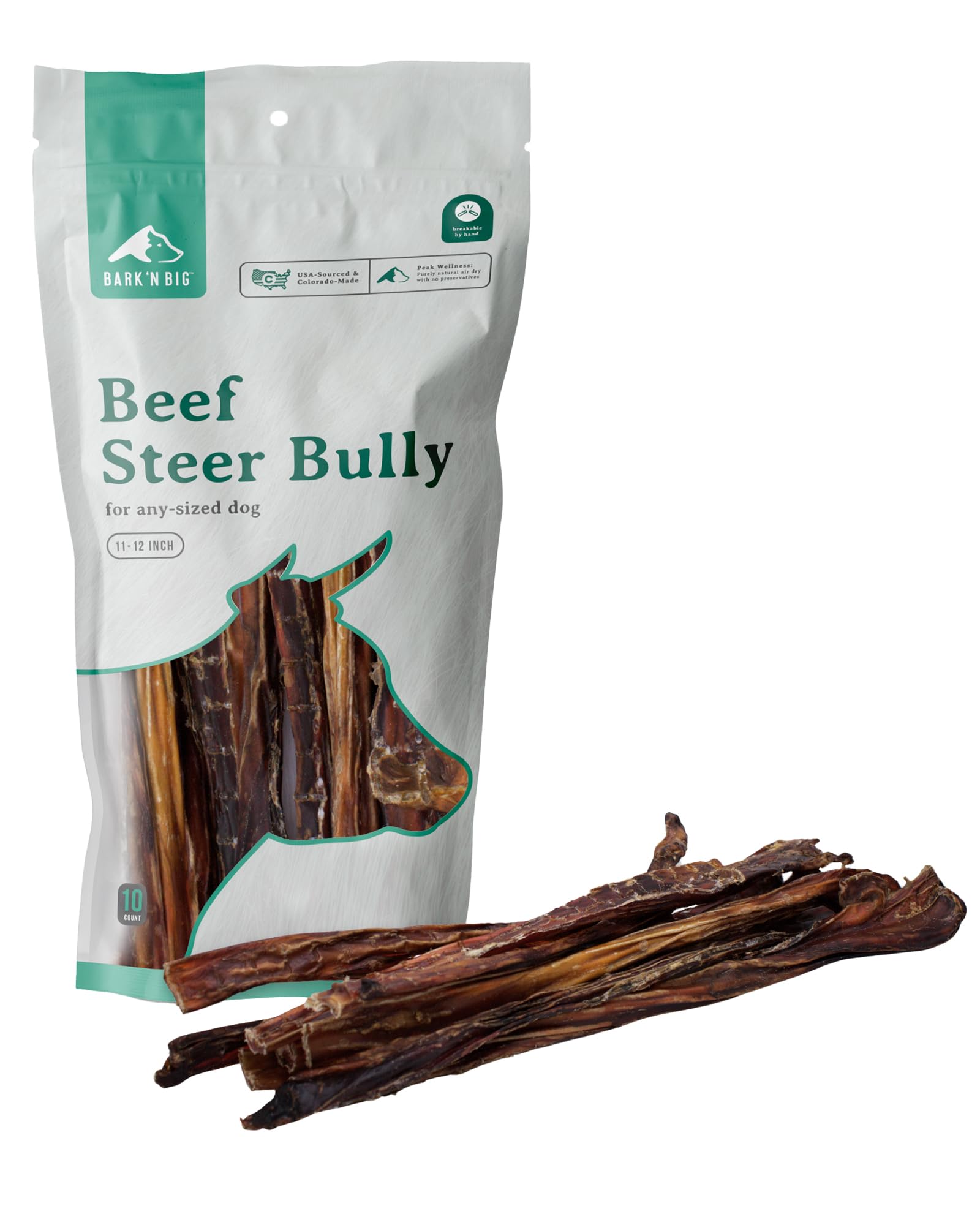 BARK'N BIG Steer Sticks for Dogs - Chew Stick for Dogs, Odor Free Pizzle Sticks, Bully Chews Made in USA & Sourced in The USA - 11-12 Inch - 10 Ct|Pet Supplies