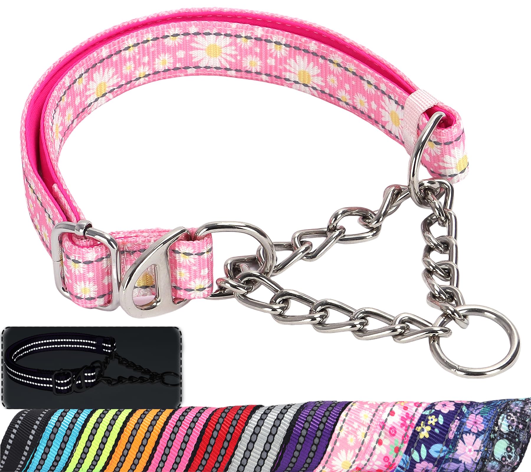Martingale Collar for Dogs with Pink Daisy,Reflective Nylon Adjustable No Pull Dog Training Chain Collar Training, Walking, Hunting for All Breeds(|Pet Supplies