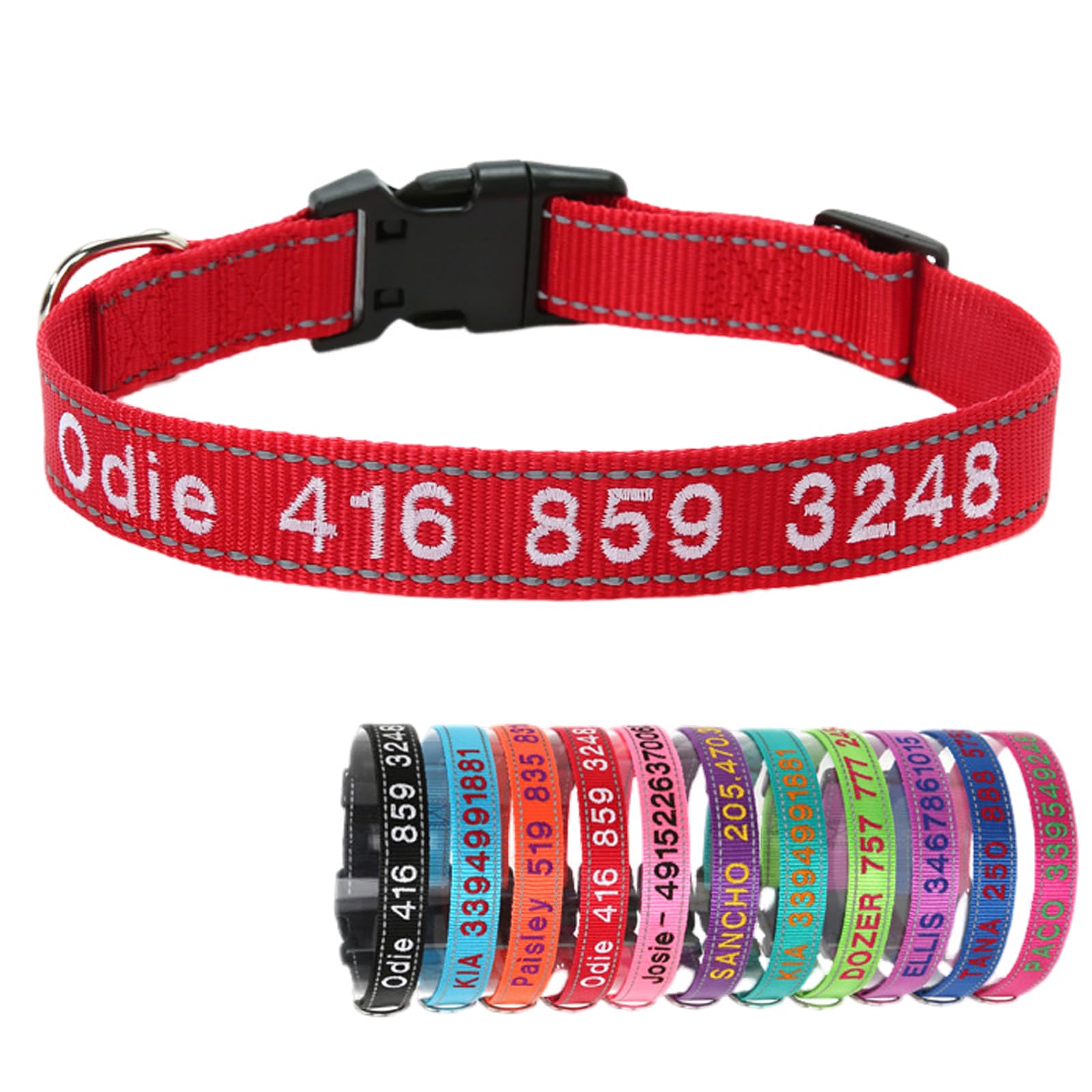 Yonsbox Red Reflective Personalized Dog Collar with Name Phone Number Quick Release Buckle Custom Embroidered for Boy Girl Small Medium Large Dogs|Pet Supplies