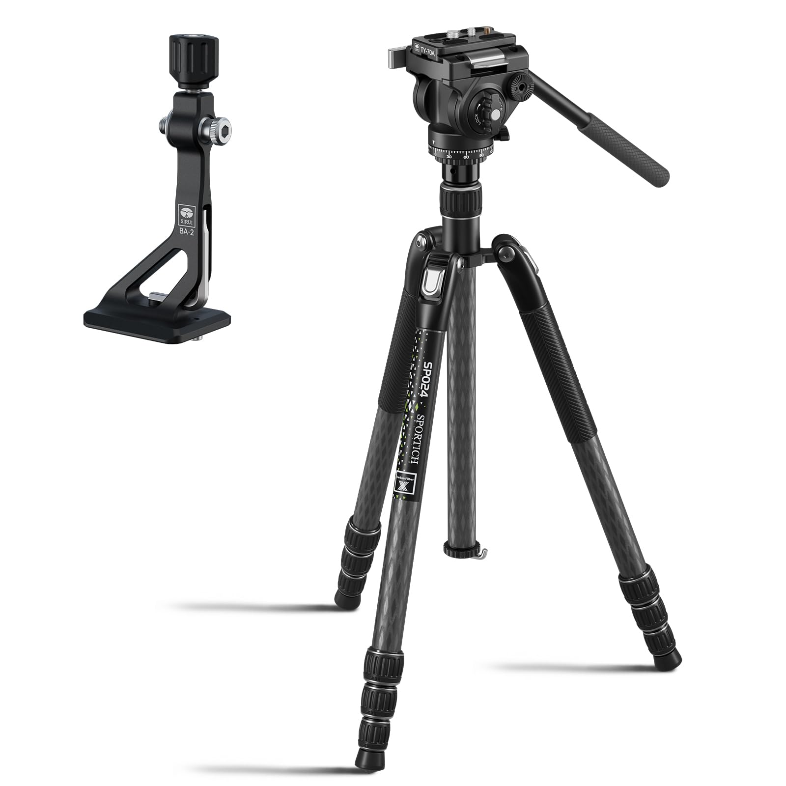 Lightweight & Durable Carbon Fiber Build - Crafted from premium carbon fiber, this tripod weighs only 0.8kg (1.76 lbs) yet supports up to 6kg (13.2 lbs) of gear. Strong, stable, but ultra-lightweight tripod for binoculars, is ideal for outdoor use without compromising on performance. Adjustable Height for Versatile Viewing Angles - 4-section extendable carbon fiber travel tripod, easily adjust your viewing height from 22.5cm to 148.5cm (8.9" to 58.5") by using quick-twist leg locks and semi-auto leg angle adjustments system. Ideal for birdwatching, stargazing, or nature observation at any elevation. Compact & Travel-Ready - With 180° reverse-folding legs and high-quality carbon fiber, SP024+BX5 can be retracted to 54.5cm/21.5" length and weighs only 1.4kg/3lbs for an ultra-compact profile. Easy to carry in your backpack or suitcase. A great companion for hiking, backpacking, and travel photography in rugged environments. Detachable and Invertible Center Column - The center column can be divided into a long and a short section. The height of tripods is flexible for viewing at different angle by adjusting the center column. It can be converted to a short center column for low angle viewing and be inverted for low and macro photography. Pro Binocular Adapter BA-2 - Come with Binocular tripod adapter BA-2,,made of high quality aluminum alloy, BA-2 is durable and sturdy, it'sonly 0.07kg but can load up to 5kg. The adapter has a Arca standard base and 1/4"-20 thread bottom screw hole, can be mounted on tripod or head via Arca base to meet different needs for outdoor observation B5X Pro Outdoor Fluid Head - With new rapid system and side loading plate design, installation is easier and faster. Superior balancing system allow 360° panorama panning friction adjustment and -60° to +90° stepless tilting, B5X fluid head loads up to 5kg/11lba. can be rotated smoothly to help carpture moving object. Ergonomic design handle coated with rubber sleeve, can be easily adjusted for comfortable operation. SPORTICH SP024+BX5 Optics Carbon Fiber Tripod with Fluid Pan Head, 55" Travel Tripod for Binoculars, Spotting Scopes, Cameras, Binocular Adapter, Max Load 6kg/13lbs