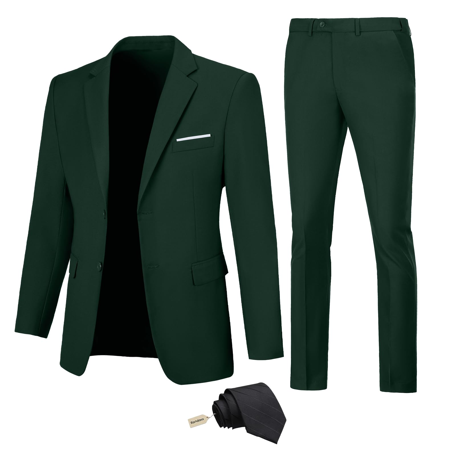 Fesenbo Men Suit Slim Fit 2 Piece Solid 2 Button Business Suits Blazer Wedding Prom Tuxedo for Men Suit Jacket Pants with Tie|Clothing