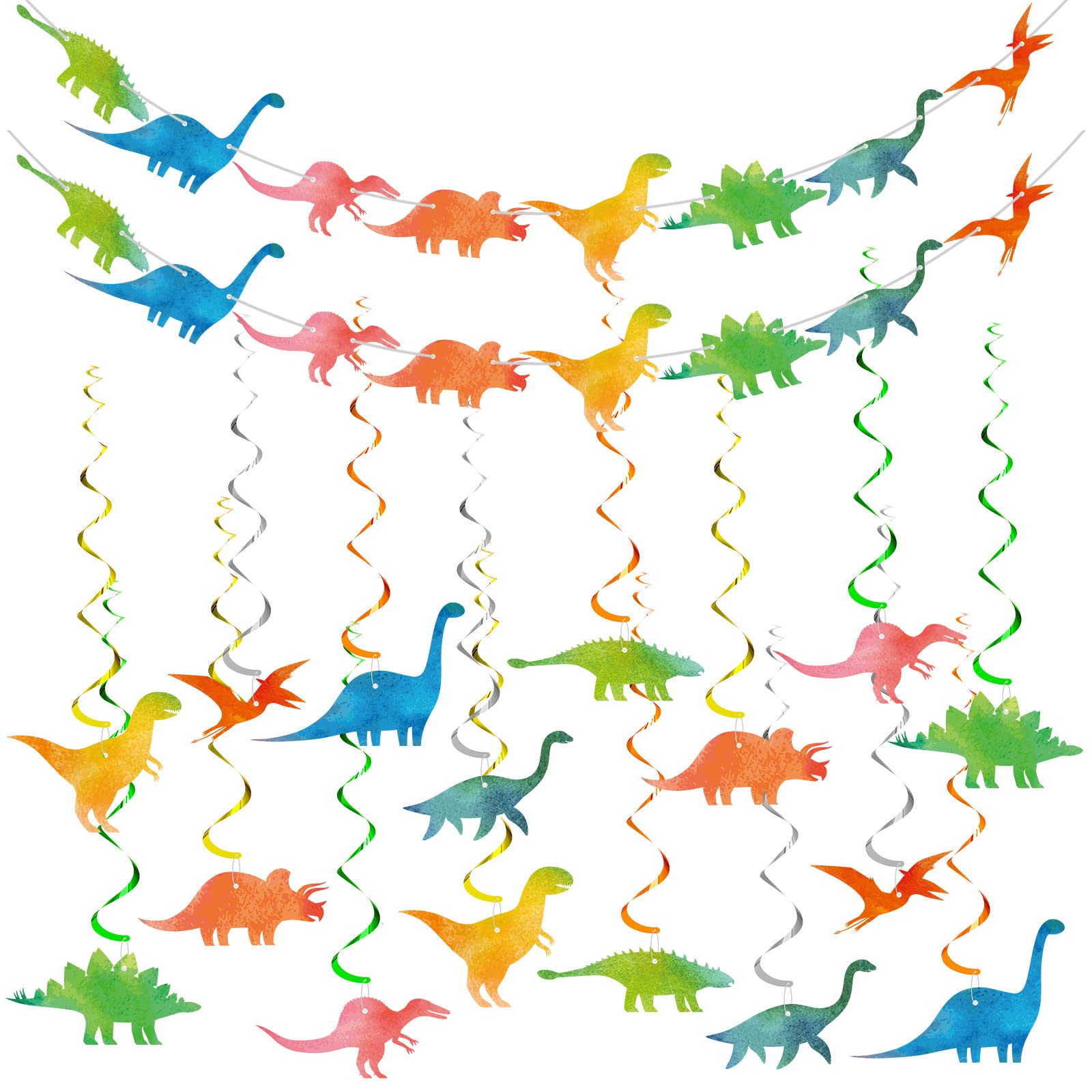 34 Pcs Watercolor Dinosaur Banner and Hanging Swirls Party Decorations Set Dinosaur Birthday Decor Dino Birthday Streamers for Kids Jungle Party|Toys
