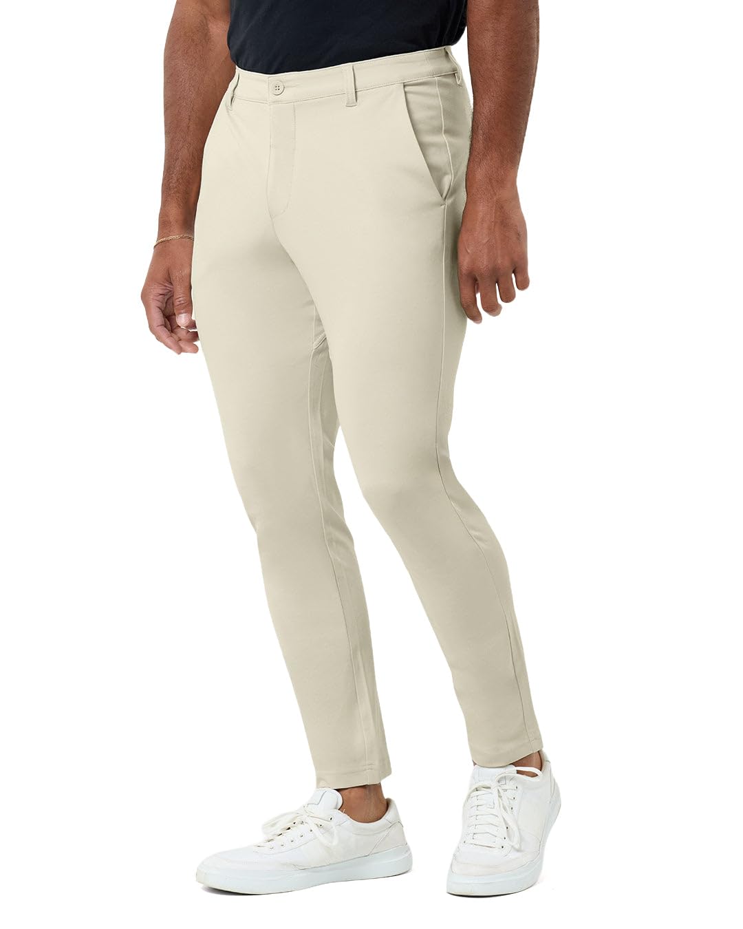 INTO THE AM Casual Pants for Men - Slim Fit Stretch Chinos Tapered Tech Travel Pants Hidden Zipper Pocket 30" & 33" Inseam|Clothing