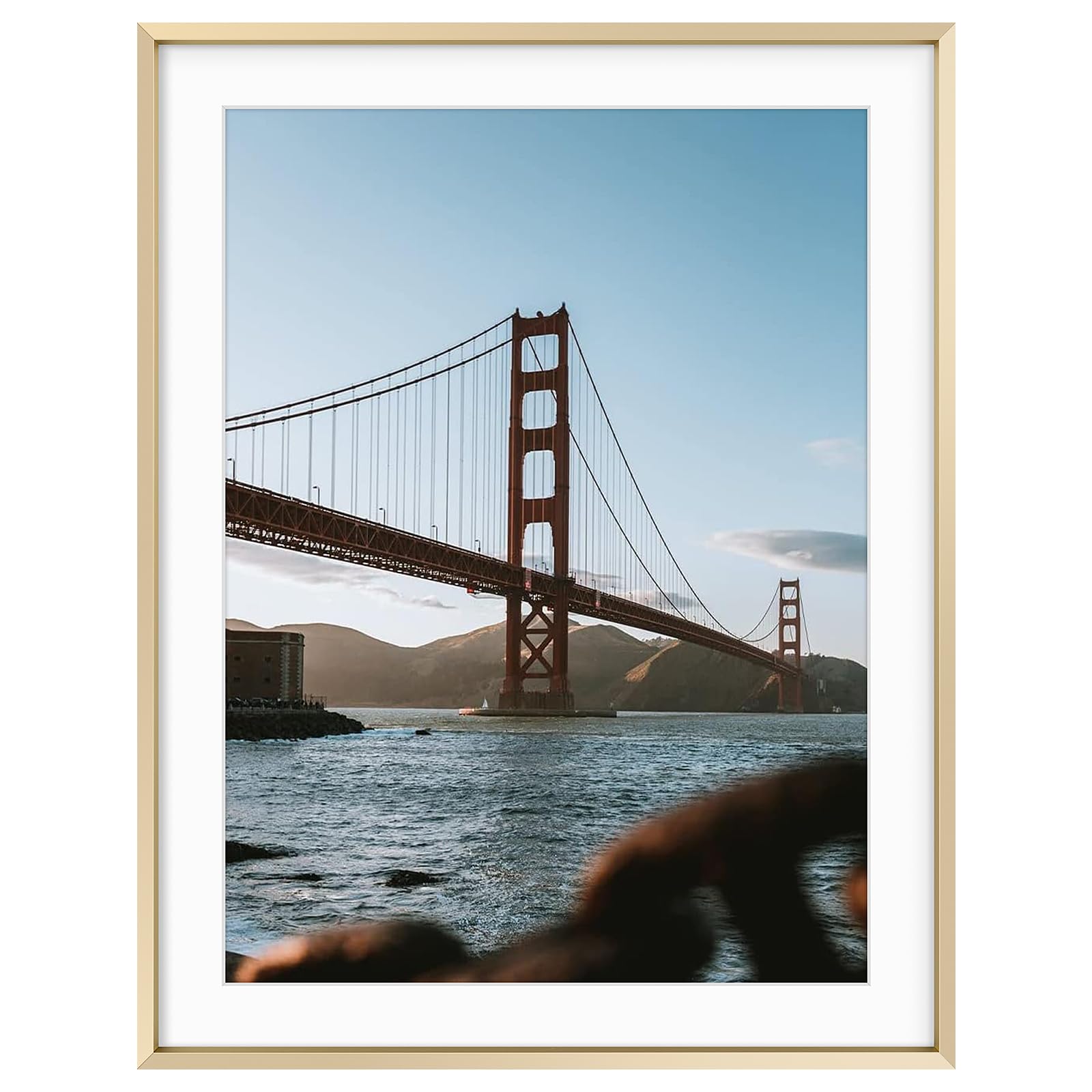 Frametory, 14x18 Metal Picture Frame with Mat for 12x16 Picture & Real Glass, Aluminum Photo Frame Collection (Gold, 1 Pack)|Home & Garden