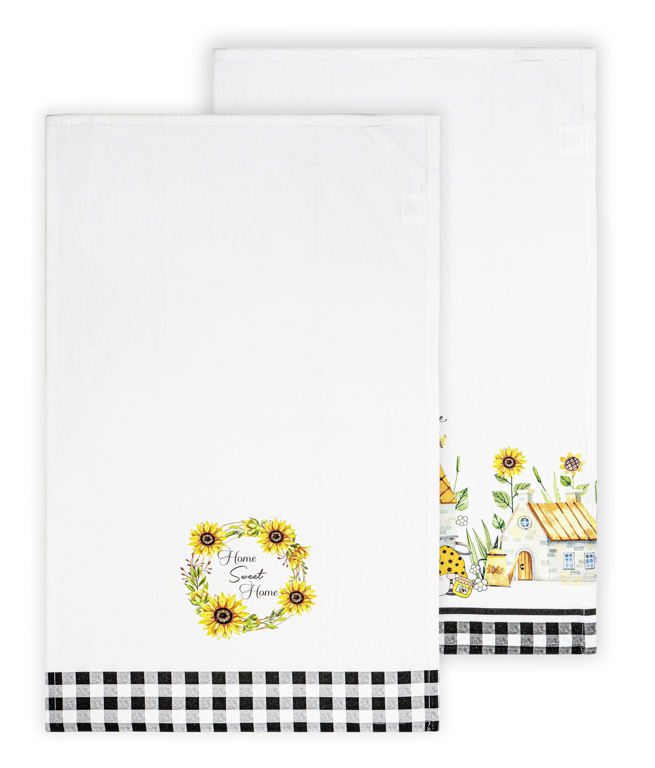 PurpleEssences Flour Sack Kitchen Towels - Set of 2 Summer Dish Towels with Hanging Loop 16x26 Inch Absorbent Reusable Cotton Cloths for Cleaning,|Home & Garden
