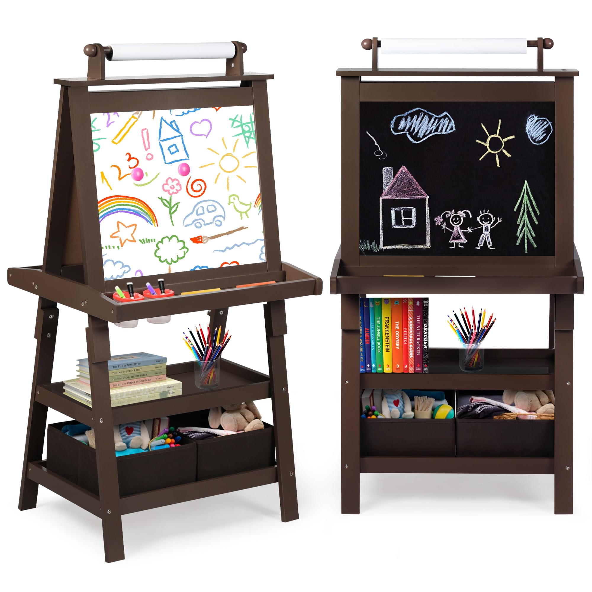 TODEFULL Art Easel for Kids, 3 in 1 Wooden Toddler Easel w/Magnetic Whiteboard, Chalkboard & Paper Roll, Standing Painting Easel with Shelves & 2|Home & Garden