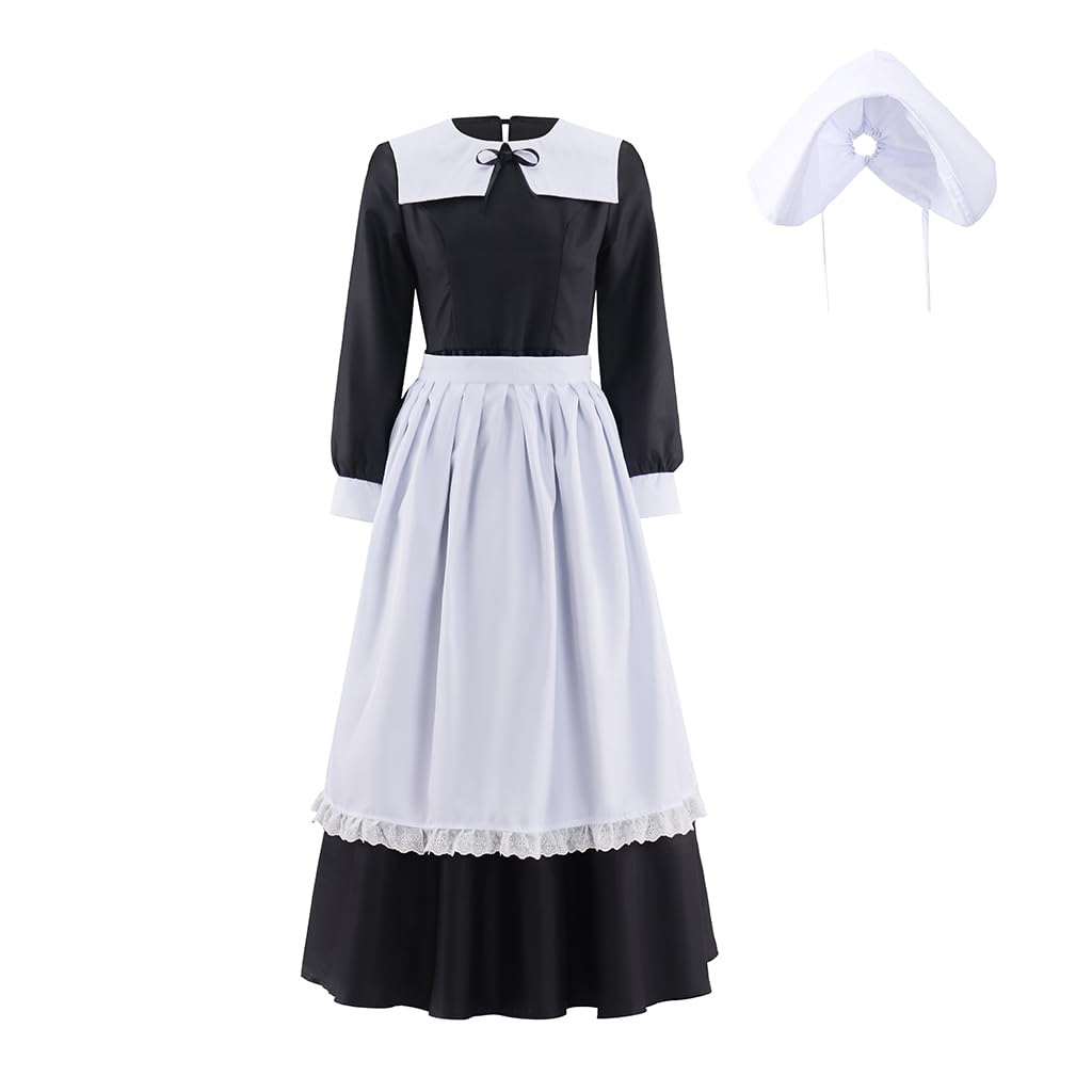 LQTIKLD Historical Colonial Costume Pioneer Maid Apron Dress Pilgrim Women Costume Fancy Dress with Bonnet|Toys