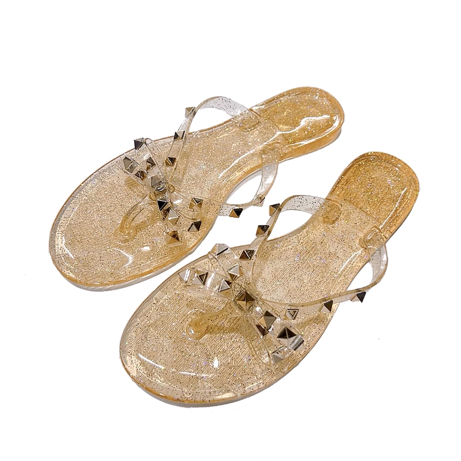 LVOMU Women's Studded Bow Jelly Flat Flip Flops Fashion Comfort Open Round Toe Slip On Thong Slipper Sandals With Rivets for Summer Outdoor Beach Pool|Shoes
