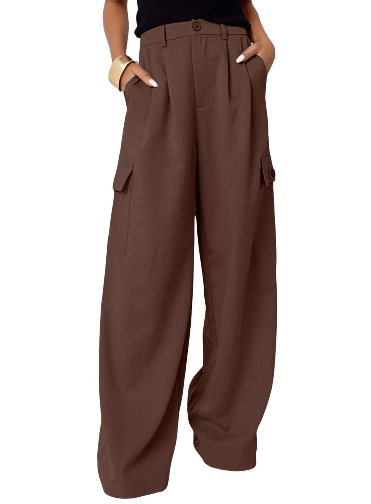 Dokotoo Womens High Waisted Wide Leg Cargo Pants Baggy Casual Work Pants with 4 Pockets|Clothing