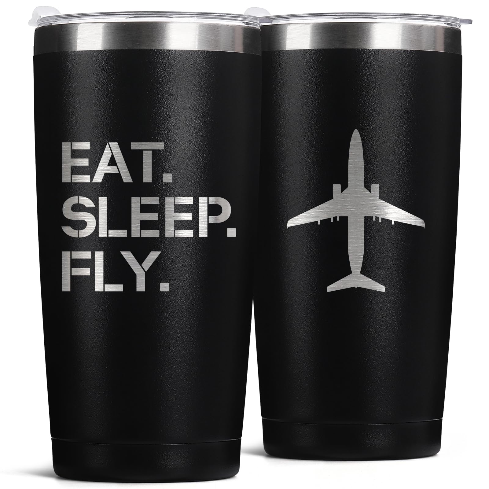 KIKERRO Pilot Gifts – 20oz Stainless Steel Travel Tumbler with Lid & Straw | Laser Engraved Aviation Mug for Pilots & Flight Attendants ||Kitchen & Dining