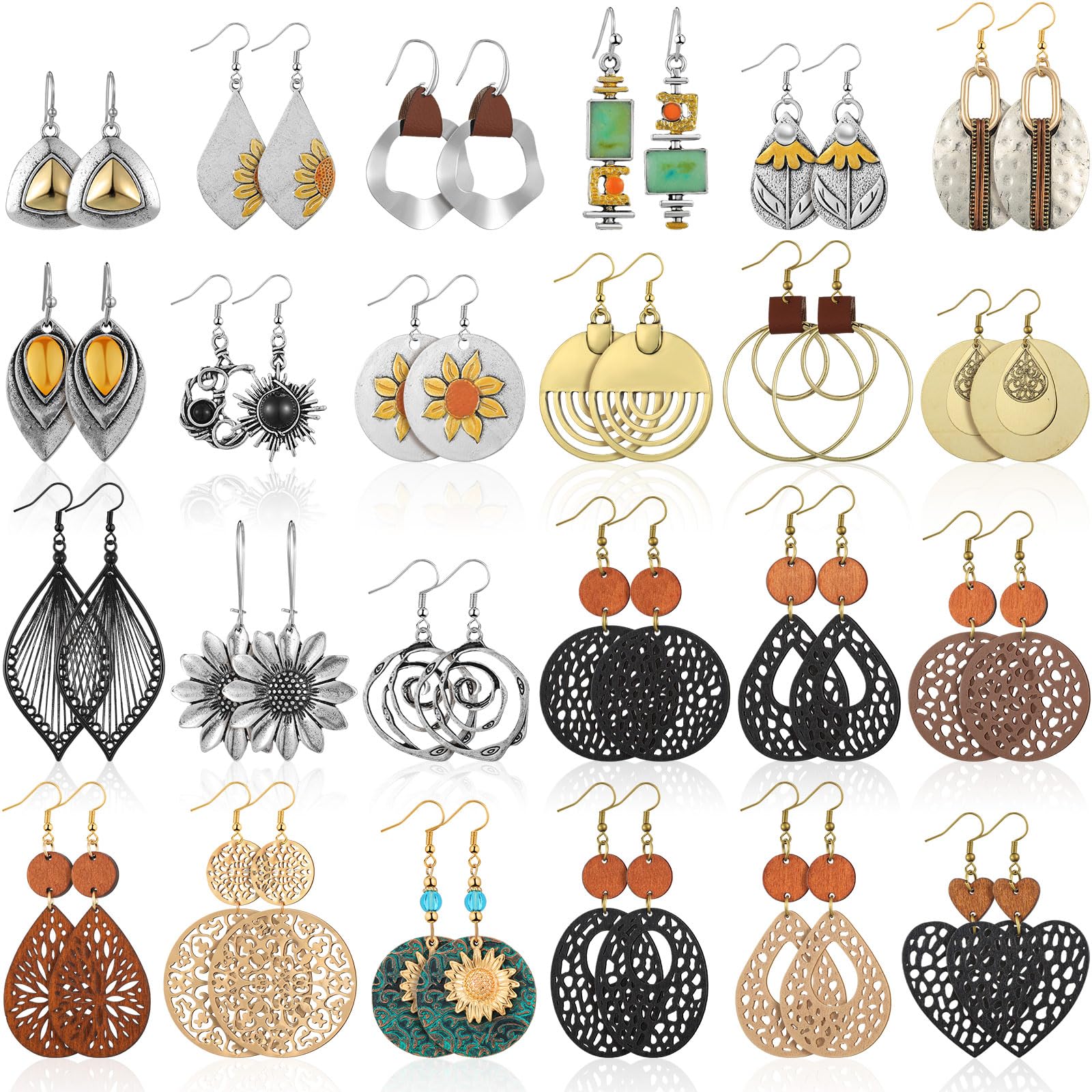Landical 24 Pairs Boho Earrings for Women Trendy Dangle Earrings Bulk Vintage Jewelry Geometric Circle Ethnic Style Wood Bohemian Fashion Earring for|Jewelry
