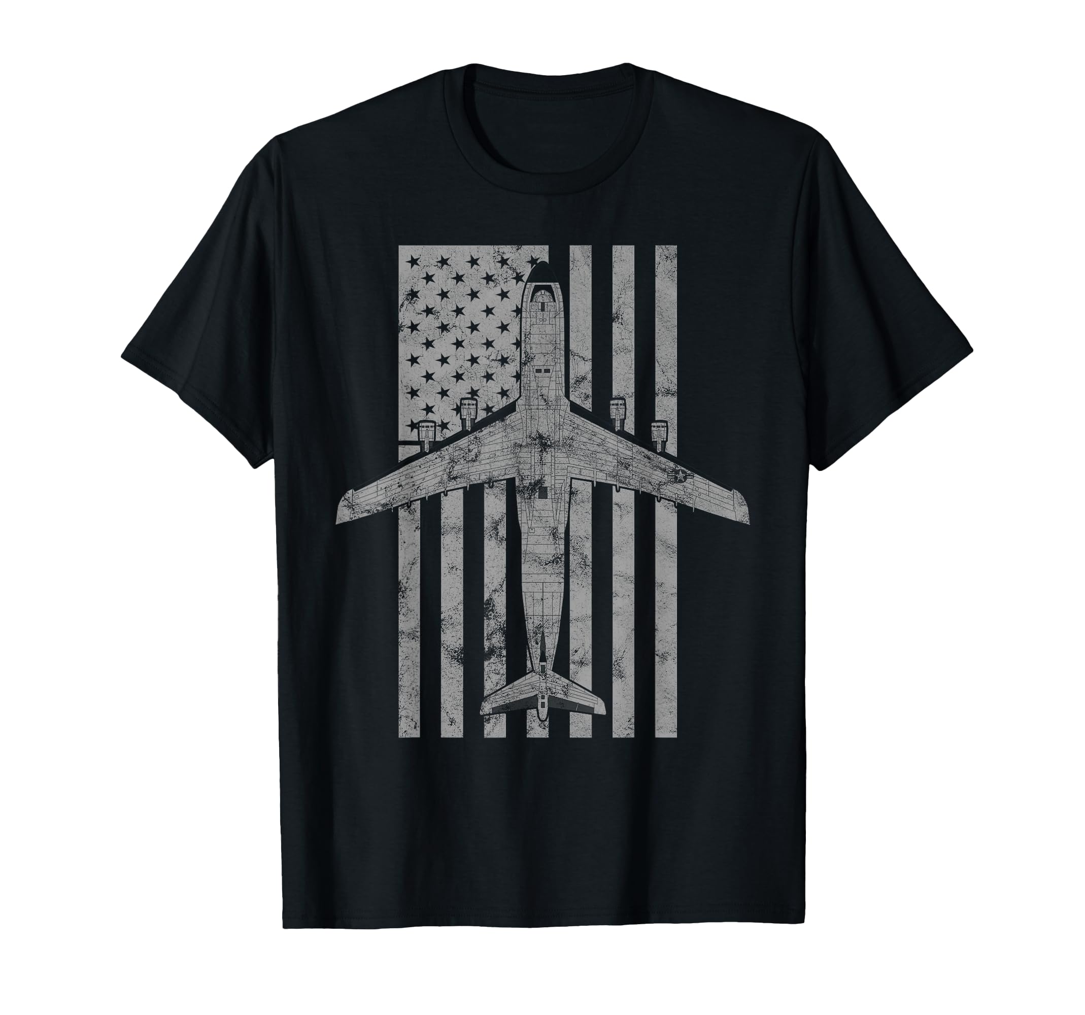 C-5 Galaxy Military Transport Airplane Vintage Flag T-Shirt|Clothing