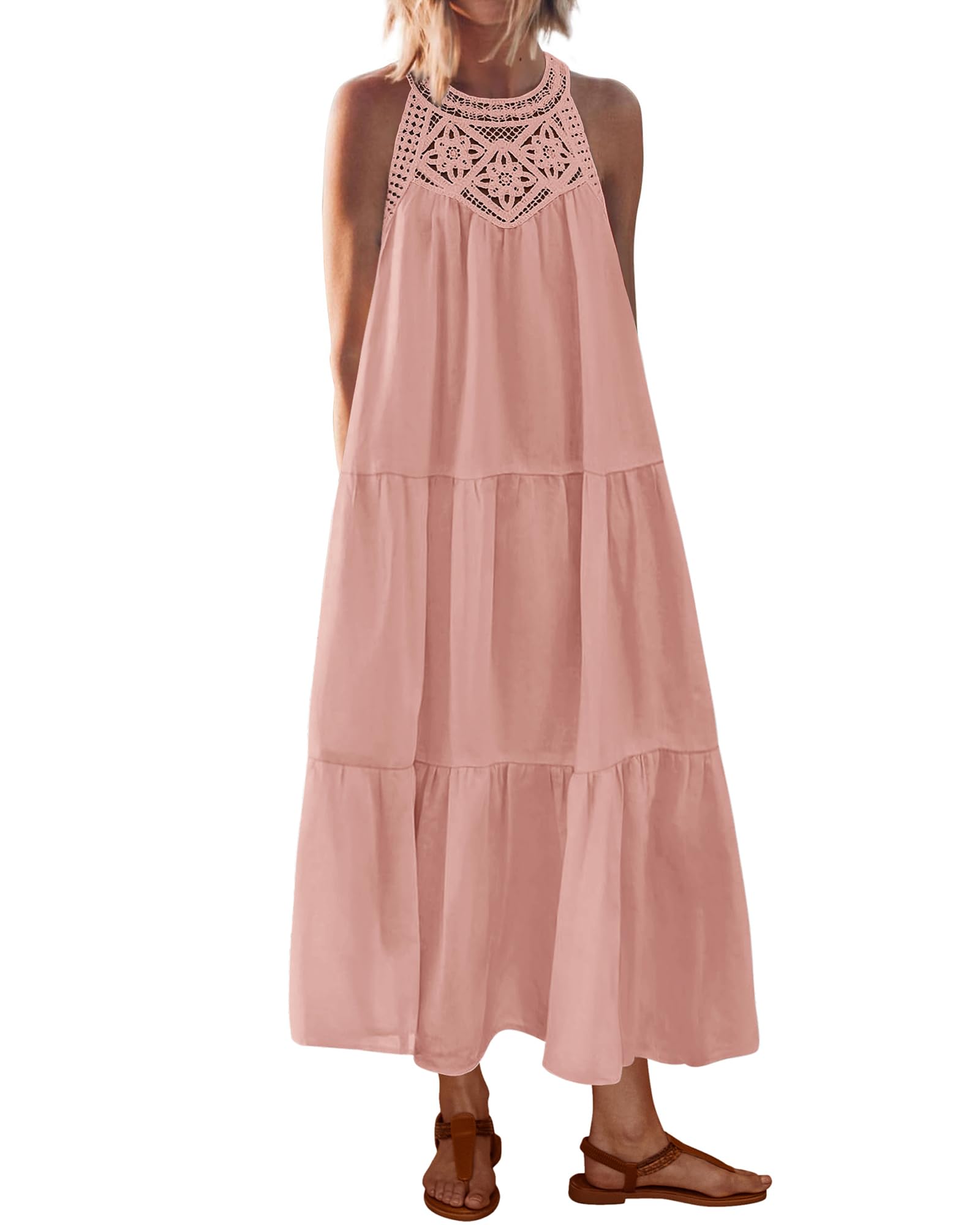 BTFBM Halter Summer Dresses for Women 2026 Casual Spring Hollow Out Sleeveless Boho Sundresses Beach Vacation Maxi Dress|Clothing