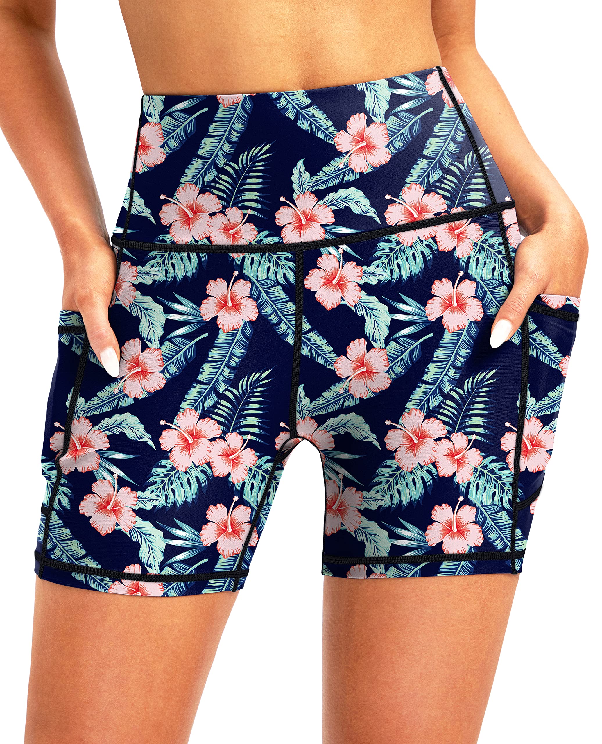 Soothfeel Women's High Waisted Swim Board Shorts 5 Inch UPF 50+ Tummy Control Bathing Suit Bottoms for Women with Pockets|Clothing
