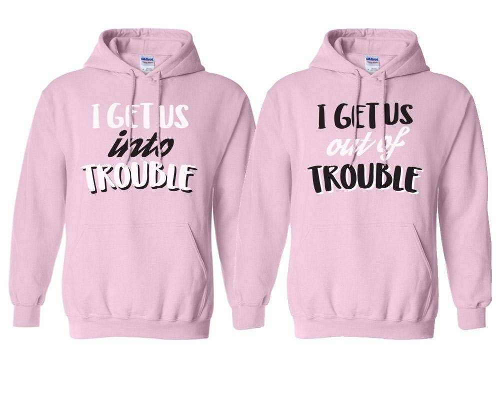 TeesAndTankYou Get Into Trouble Duo HT Matching BFF Hoodie Sweatshirt Unisex|Clothing