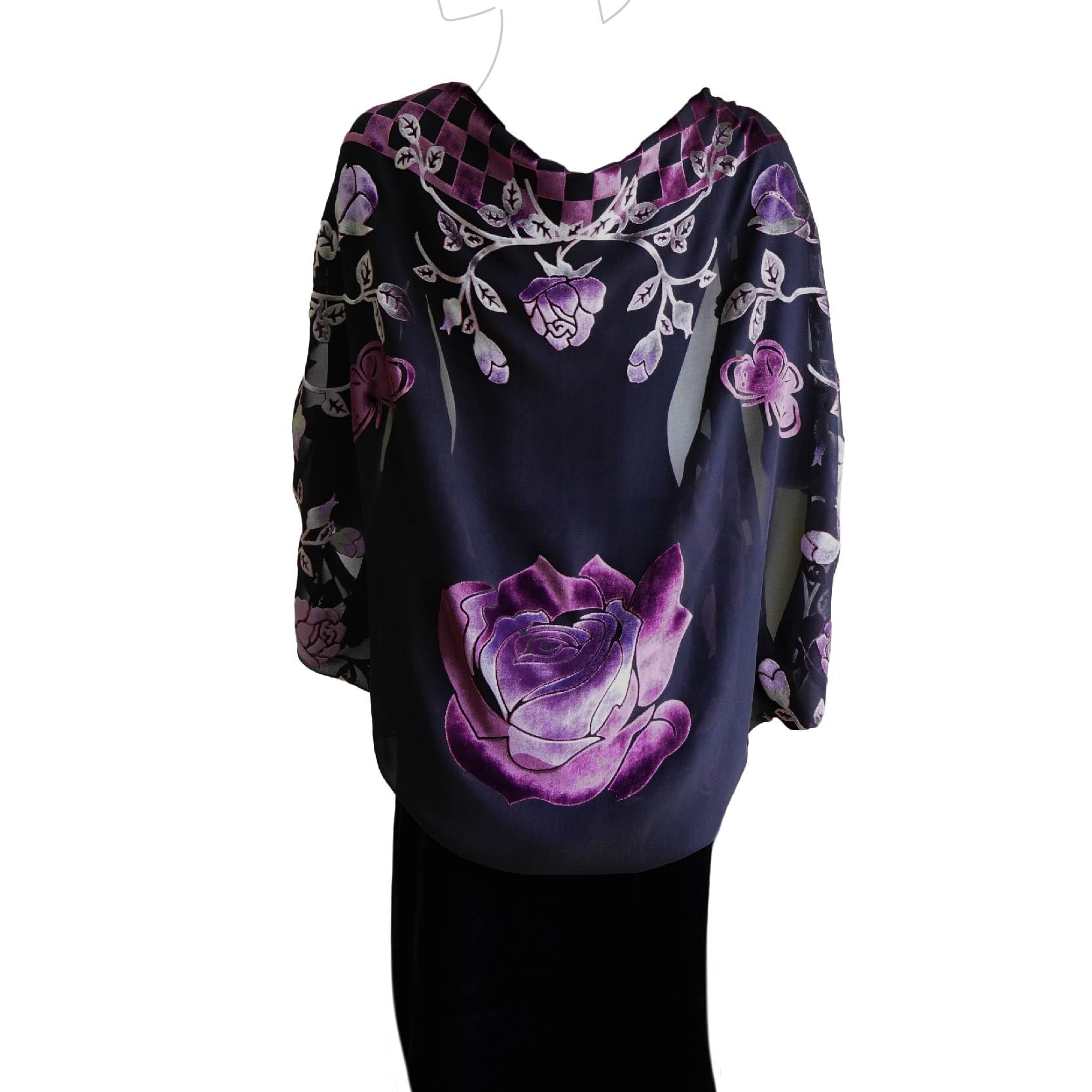 JJcollection Silk Base Burn-out Velvet Shawl,Rose, Purple Wine,Square 42"x42", No Fringe|Clothing