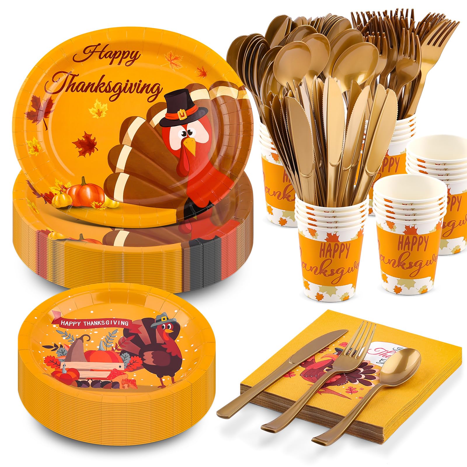210Pcs Thanksgiving Paper Plates Set -(30 Guests) with 10 * 12inch Oval and 9inch Round Plate,Napkins, Cups, Forks, Knives, Spoons for Thanksgiving|Kitchen & Dining