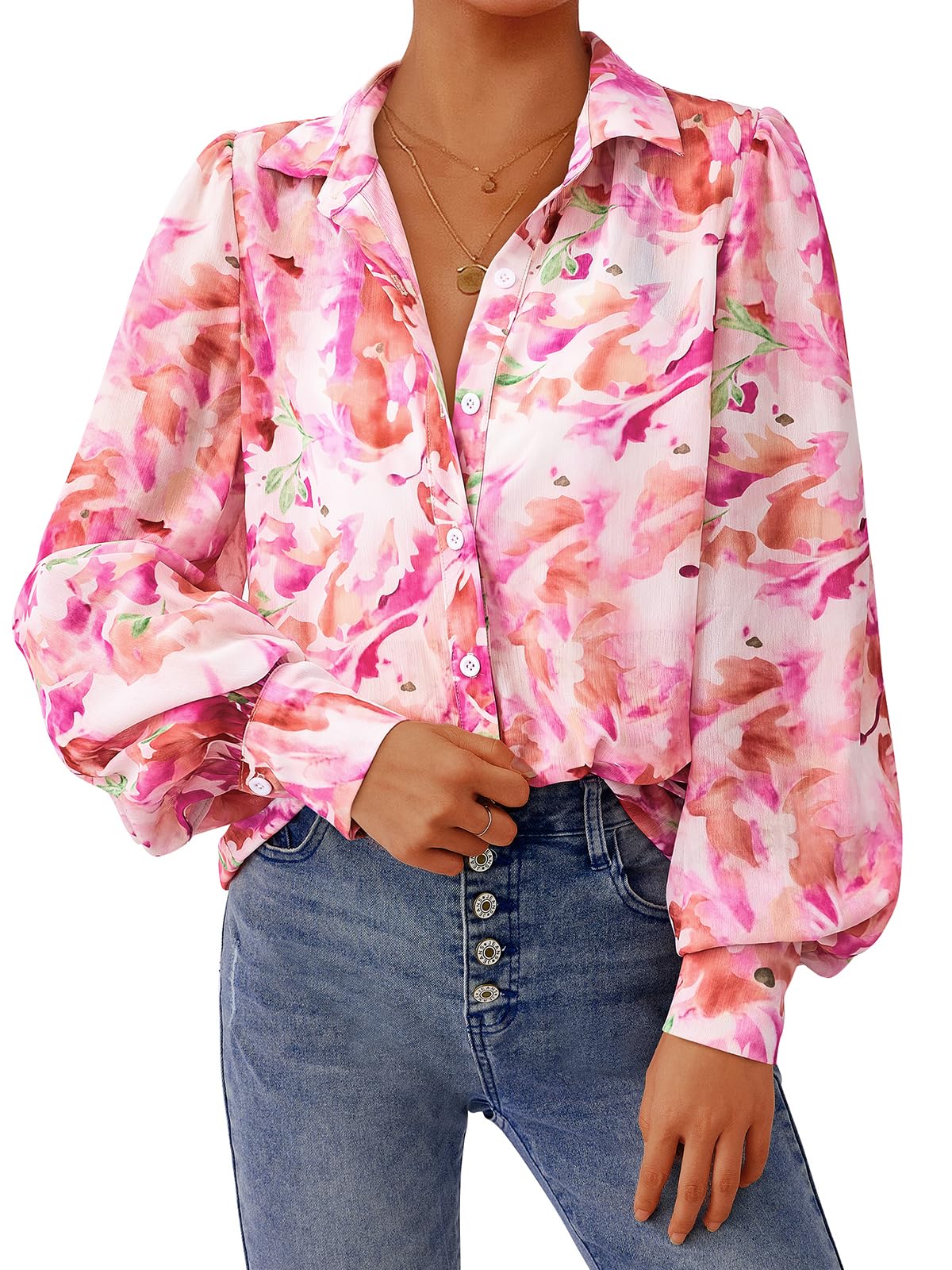 PRETTYGARDEN Women's Floral Blouses Dressy Casual V Neck Button Down Shirts Lantern Long Sleeve Boho Chiffon Spring Tops 2026|Clothing