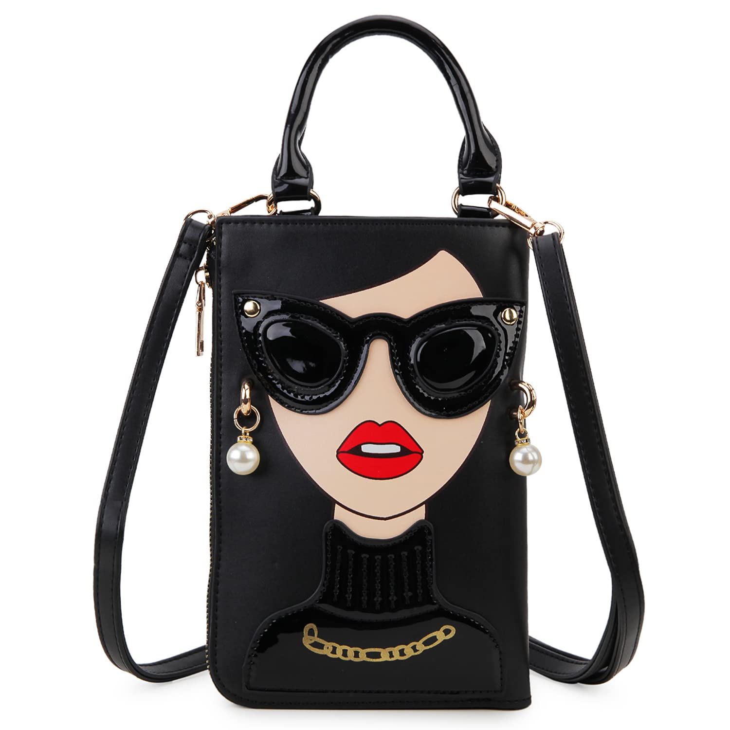 ENJOININ Women Novelty Lady Face Shoulder Bags Funky PU Leather Top Handle Satchel Handbags Clutch Purse for Women|Shoes