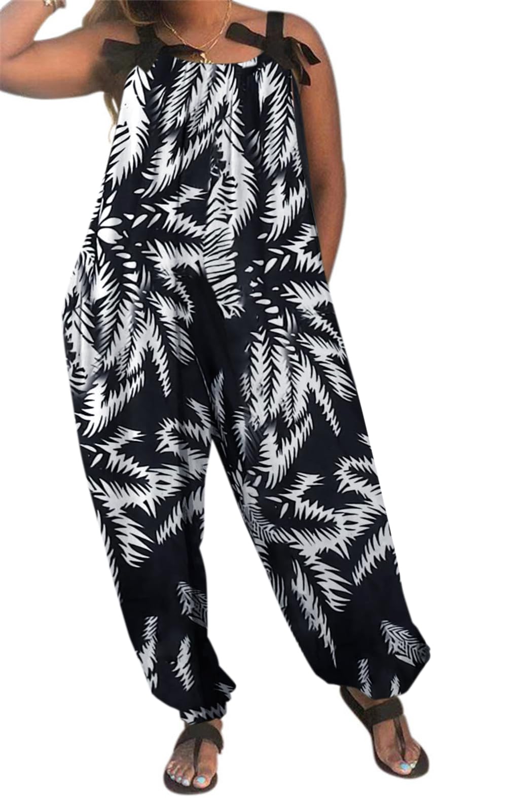 LAMISSCHE Wonens Plus Size Overalls Spaghetti Strap Baggy Romper Harem Wide Leg Jumpsuit With Pockets|Clothing