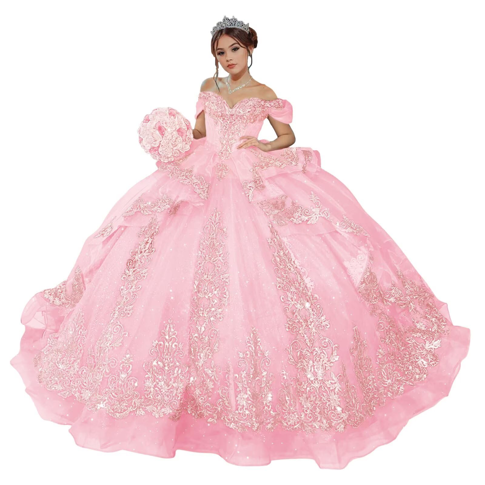 Zhangyo Off Shoulder Quinceanera Dresses Puffy Tulle Sweet 15 16 Dresses Gorgeous Gold Applique Ball Gown|Clothing