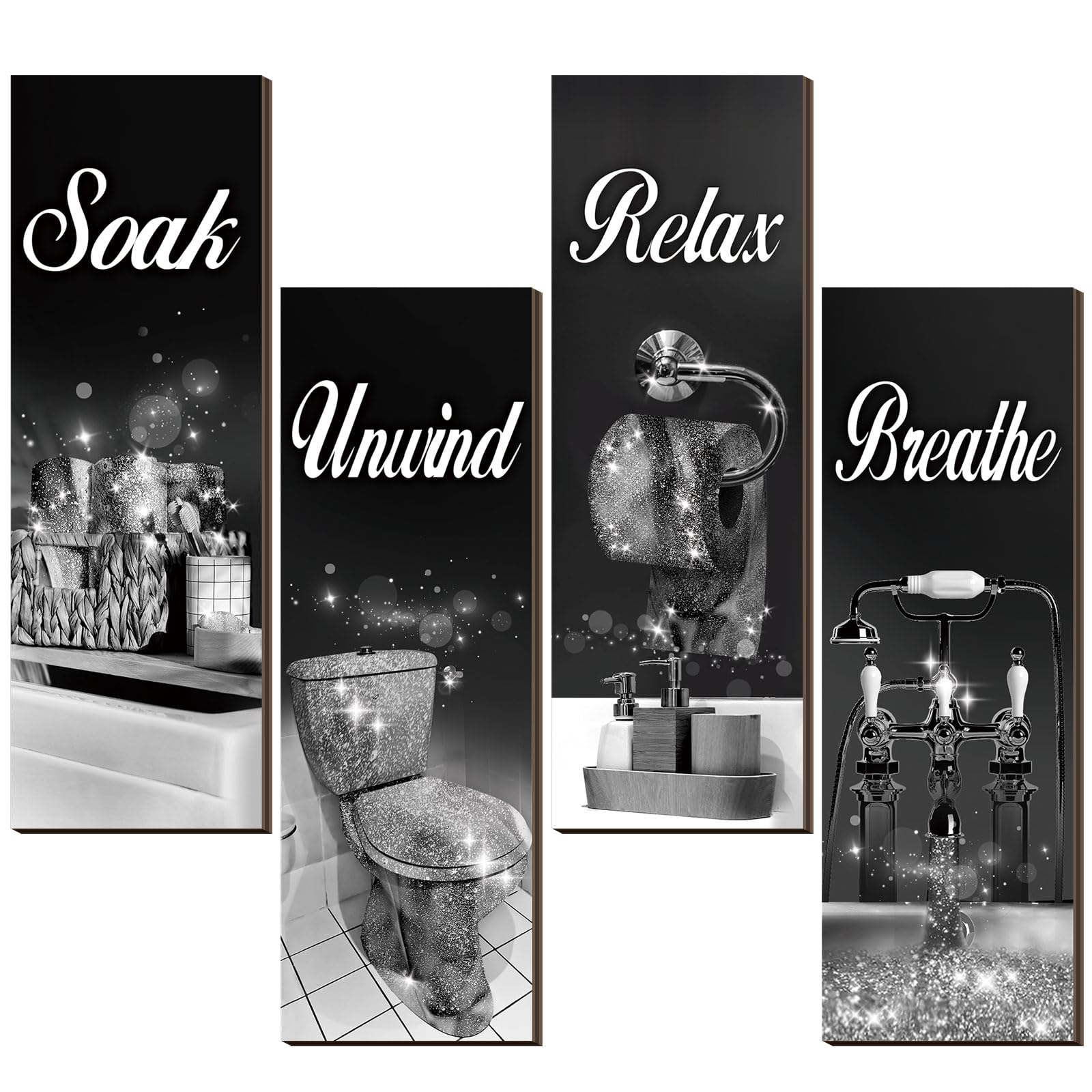 Honoson 4 Pcs Bathroom Decor Wall Art Farmhouse Bathroom Pictures Wall Decor Soak Unwind Relax Breathe Wood Hanging Sign for Home Spa Laundry(Black|Home & Garden