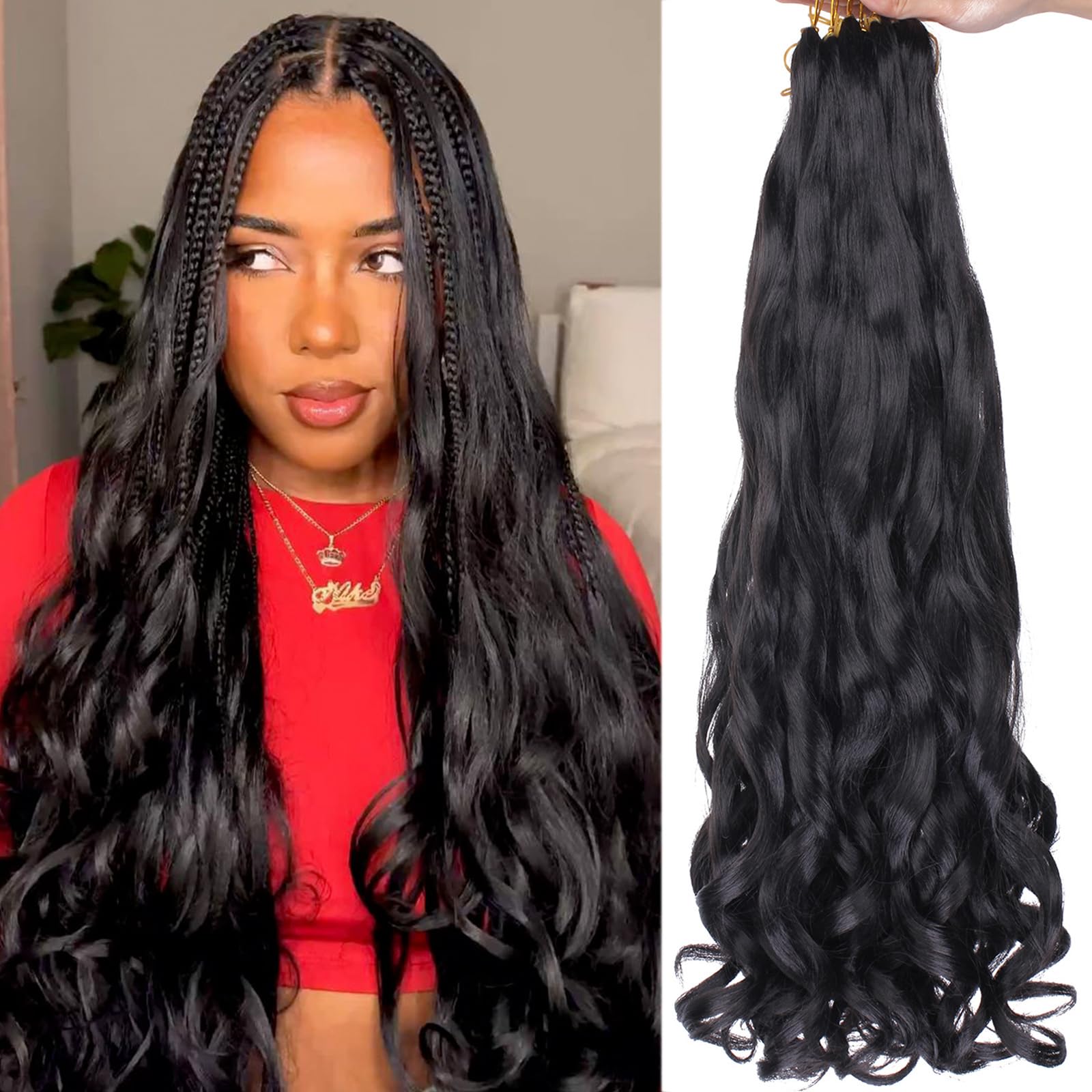 Unionbeauty Black French Curly Braiding Hair 26 Inch French Curls Box Braids 8 Packs French Curl Braids Spanish Curly Braiding Hair for Black Women 1B|Health & Beauty