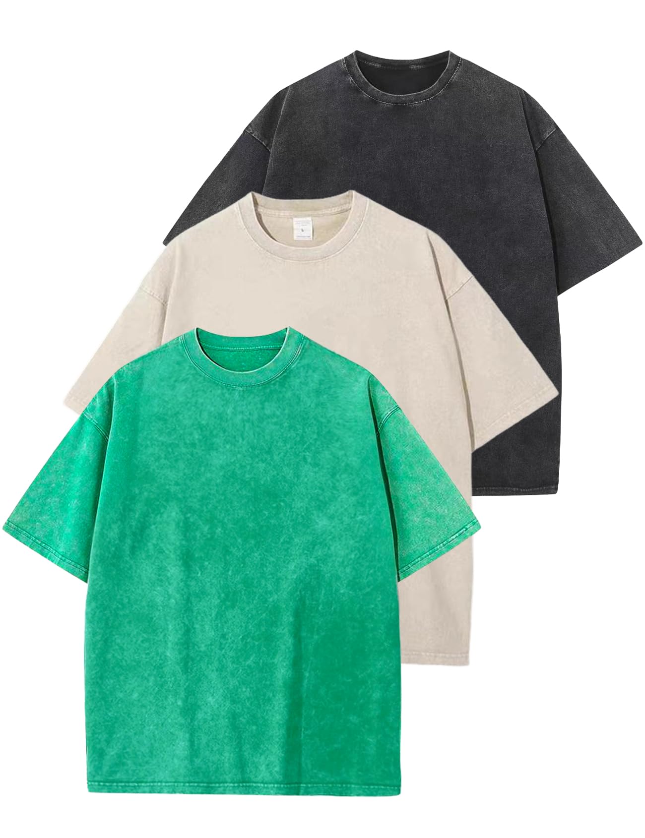 Arssm 3 Pack Men Oversized T Shirts Vintage Tee Loose Fit Short Sleeve Casual Streetwear Baggy Washed Unisex Tops|Clothing