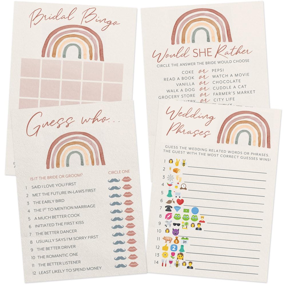 Printed Party Bridal Shower Game Set – 4 Fun Games and Activities for 30 Guests, Includes Bingo, Bride or Groom Trivia, Would She Rather, and Wedding|Baby & Toddler