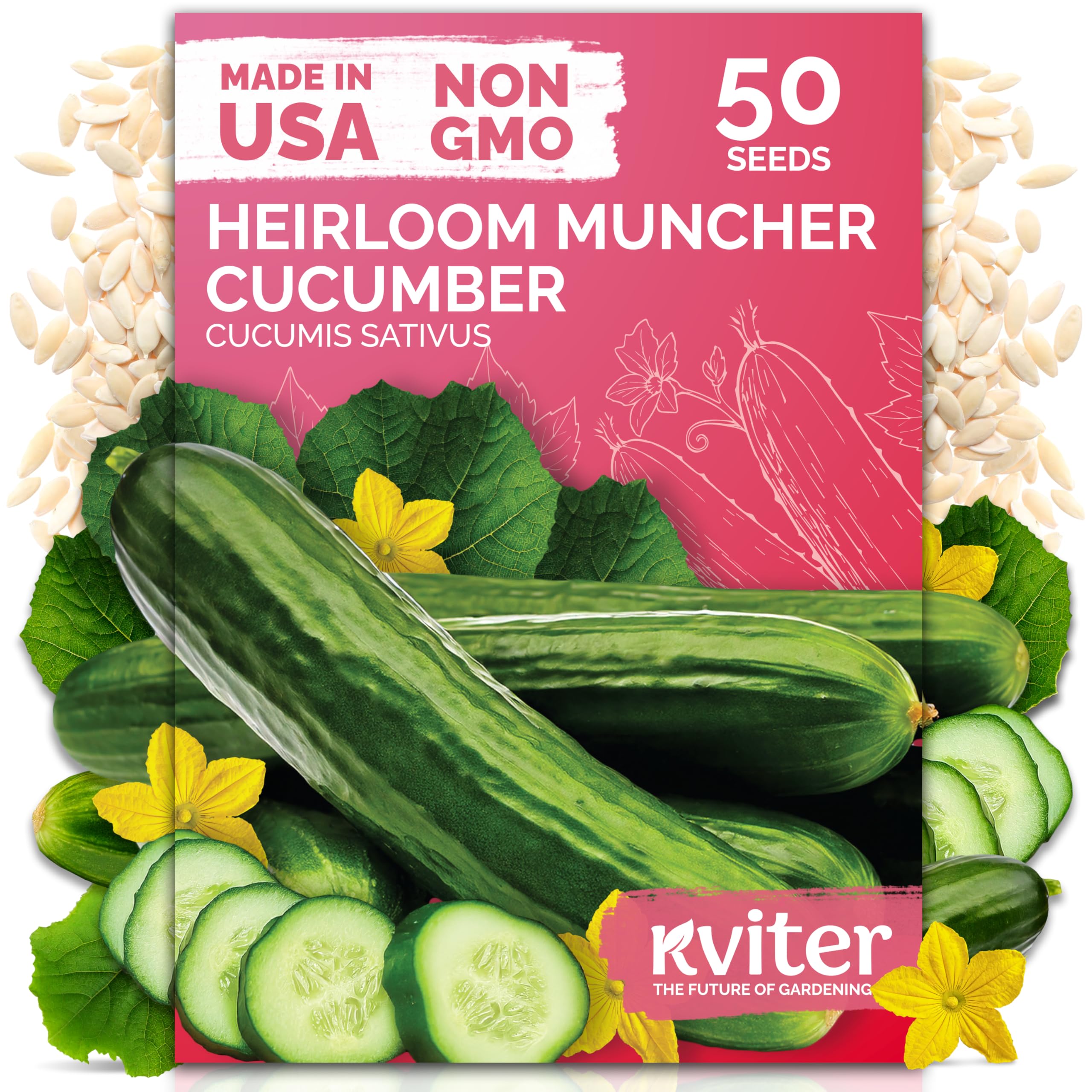 KVITER 50 Muncher Cucumber Seeds (Cucumis sativus) – Burpless & Seedless Cucumber Organic, Non GMO & Heirloom Cucumbers – Vegetable Seeds for Planting|Lawn & Garden