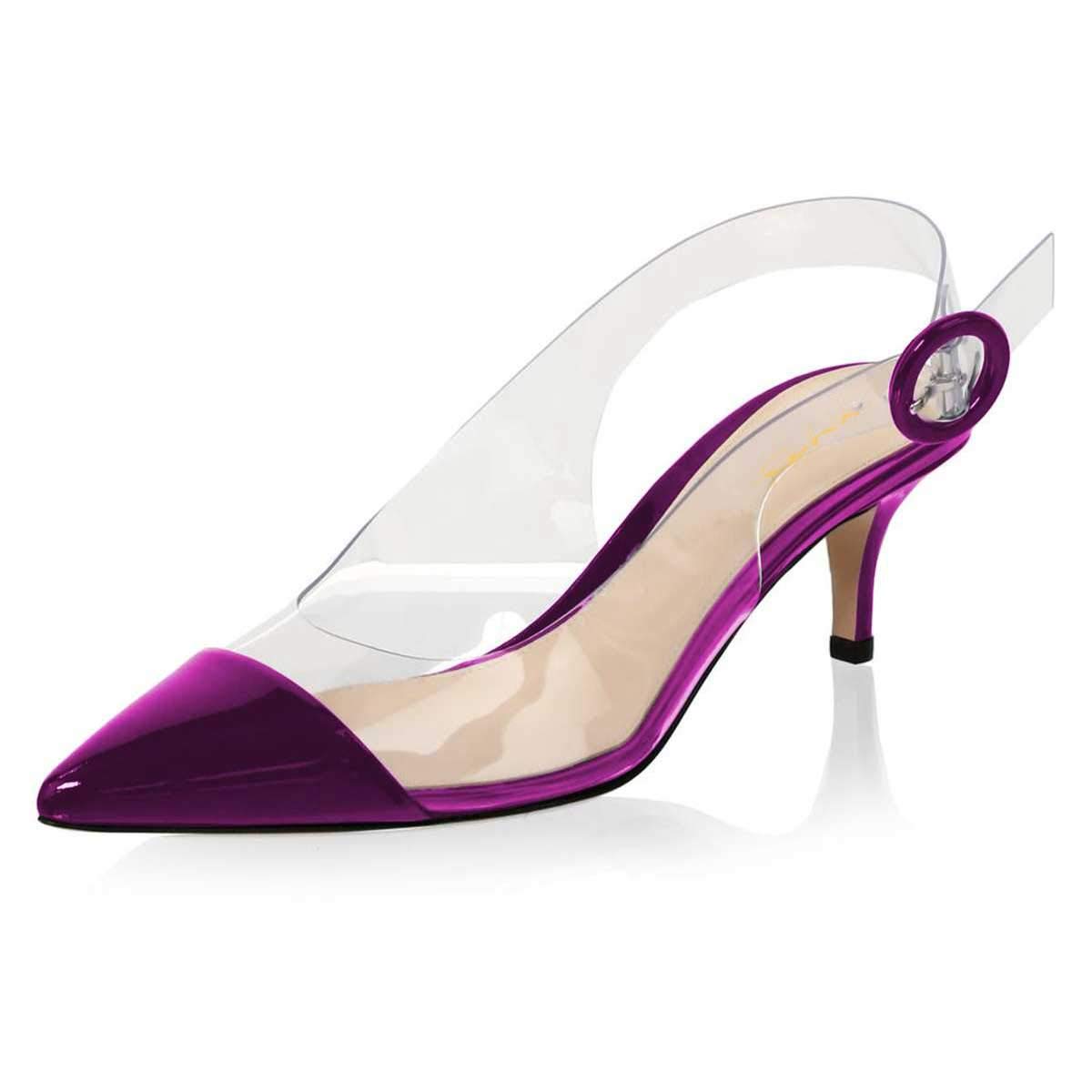 XYD Women Transparent Slingback Mid Kitten Heels Pumps Pointed Toe PVC Dress Sandals Clear Shoes with Buckle|Shoes