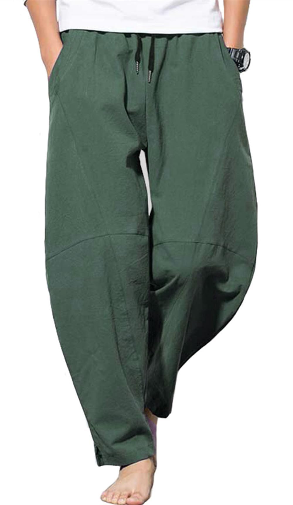 PACEIADTA Men's Cotton Linen Drawstring Pants Elastic Waist Casual Summer Beach Pants|Clothing