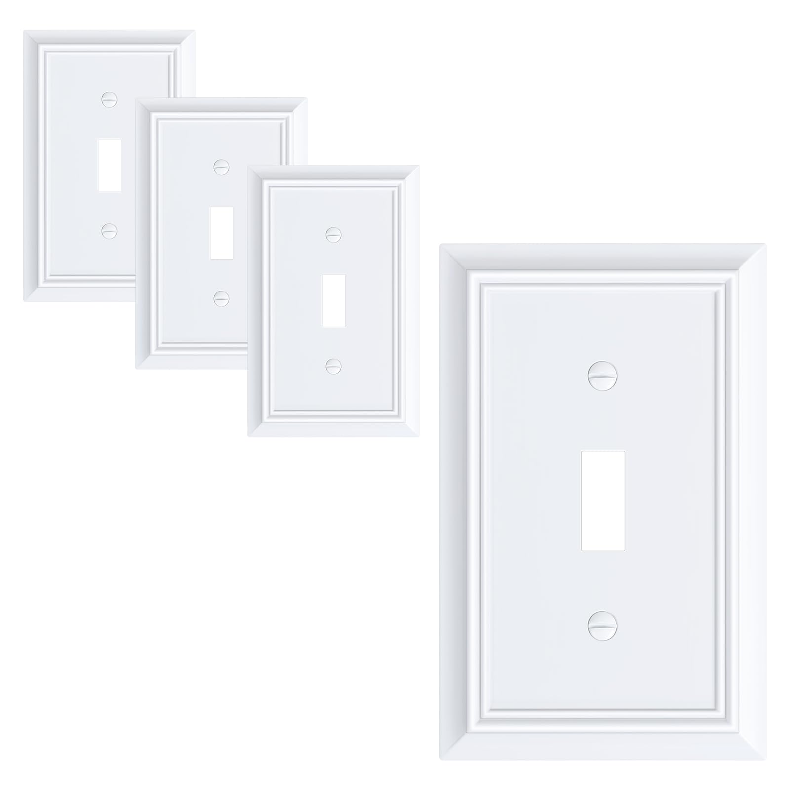 4-Pack Single Toggle Light Switch Cover Plate, Durable Natural Bamboo Fiber Decorative Switch Plate Covers, Pure White 1 Gang Wall Plate, Corrosion|Home & Garden