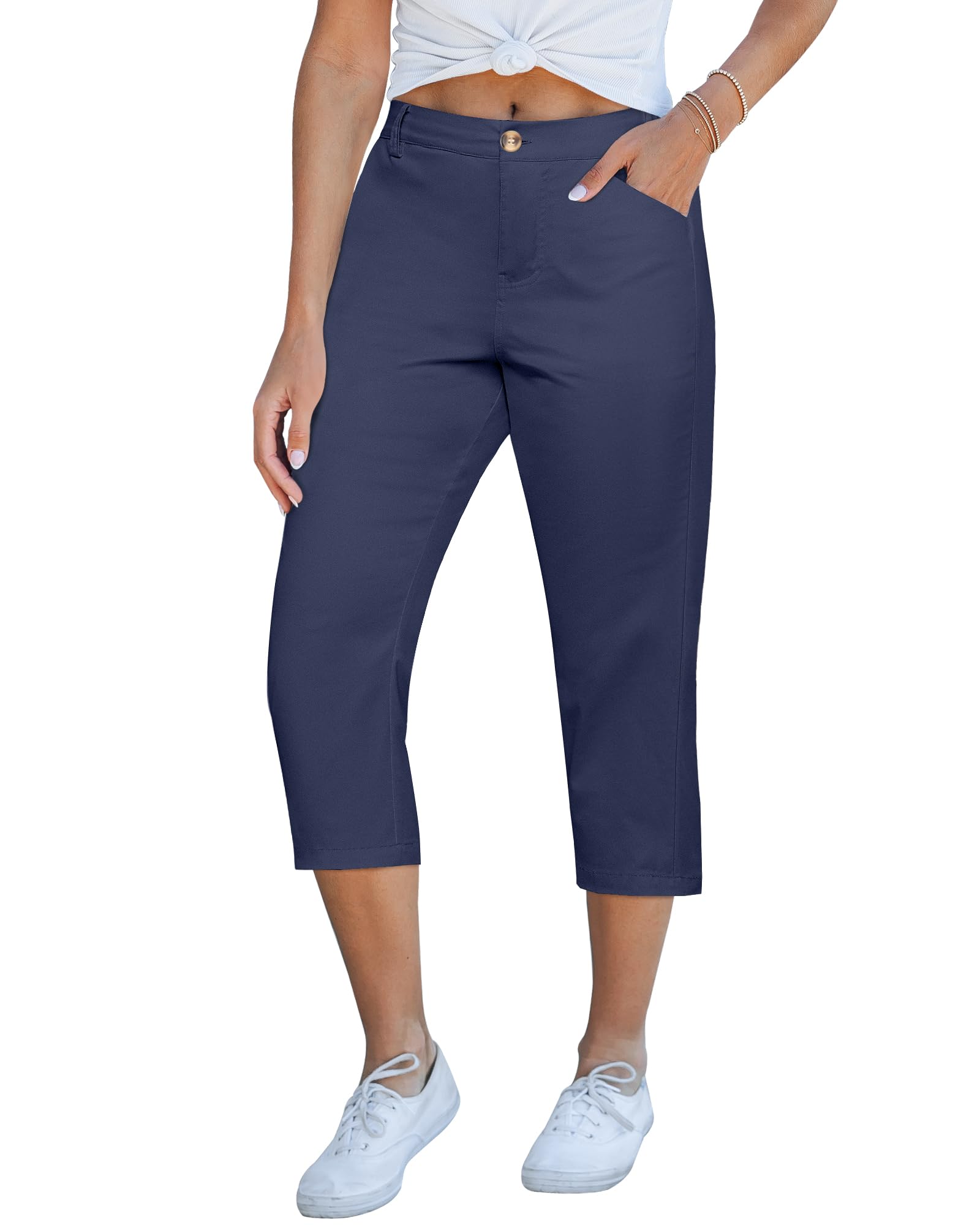 GRAPENT Capri Pants for Women Summer High Waisted Cotton Elastic Waist Dressy Casual Office Work Capris Trousers Pants|Clothing