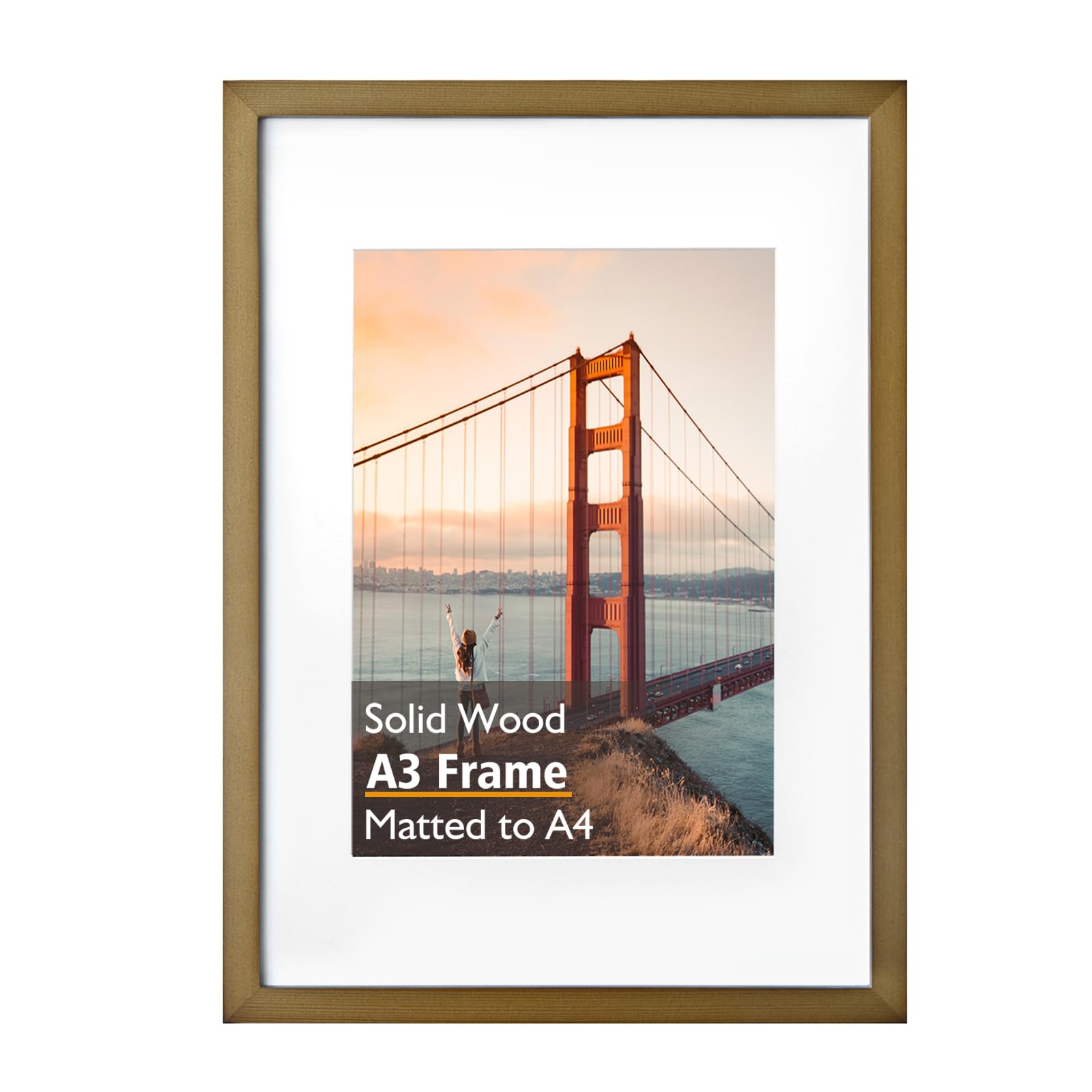 KINLINK A3 Picture Frame, Brown Solid Wood Frame with Acrylic Plexiglass for Pictures A4 with Mat or A3 without Mat, Wall Display Poster Frame 1 Pack|Home & Garden