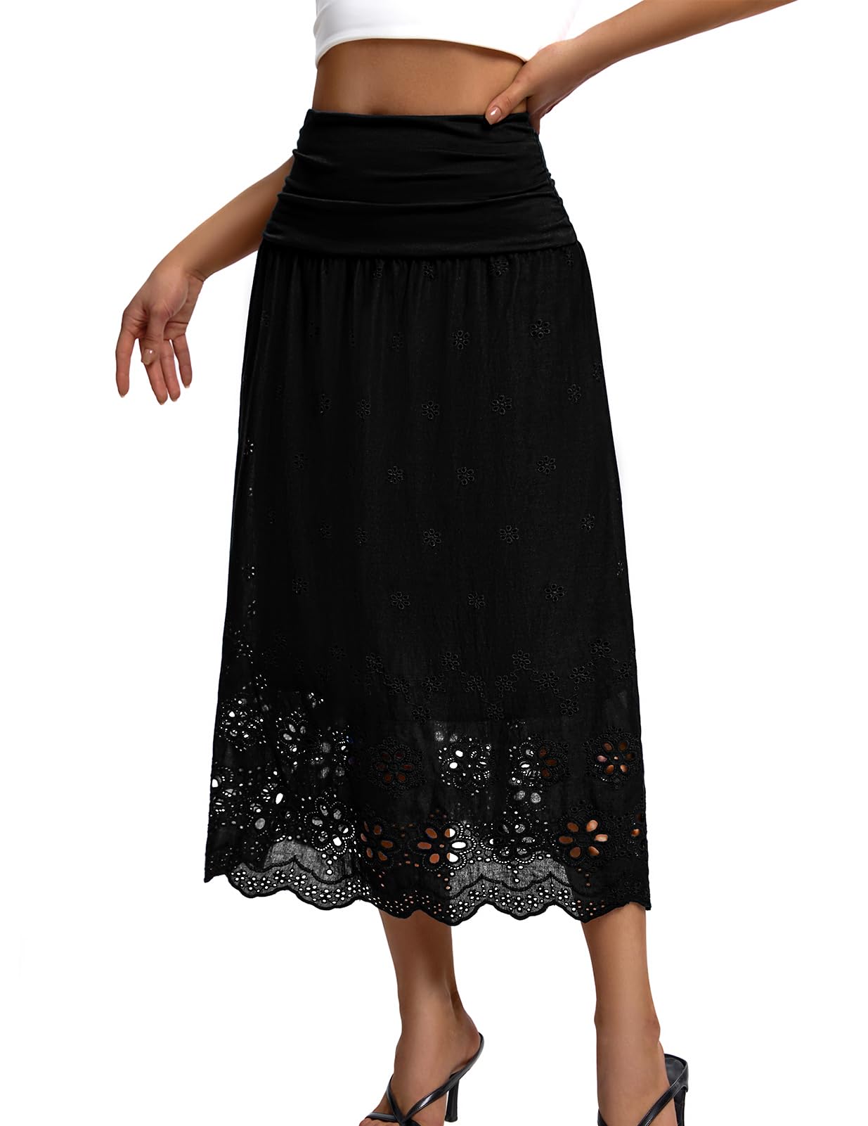 DRESSTELLS Boho Maxi Skirt for Women 2026 Lace Eyelet High Waist A-Line Flowy Beach Tiered Long Wedding Skirts|Clothing