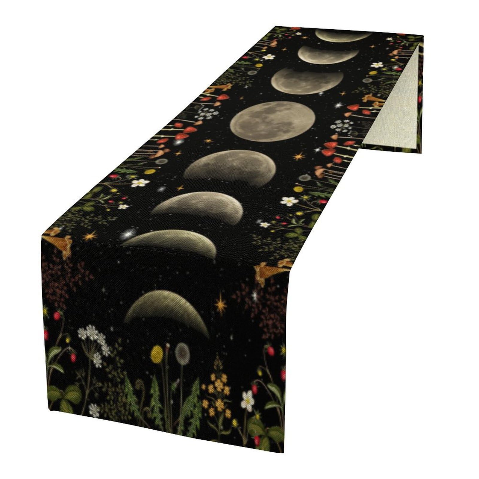 Moon Mushroom Table Runner Vintage Moon Phase Floral Moonlit Wildflower Botanical Seasonal Spring Autumn Natural Dinner Runner for Farmhouse Kitchen|Home & Garden